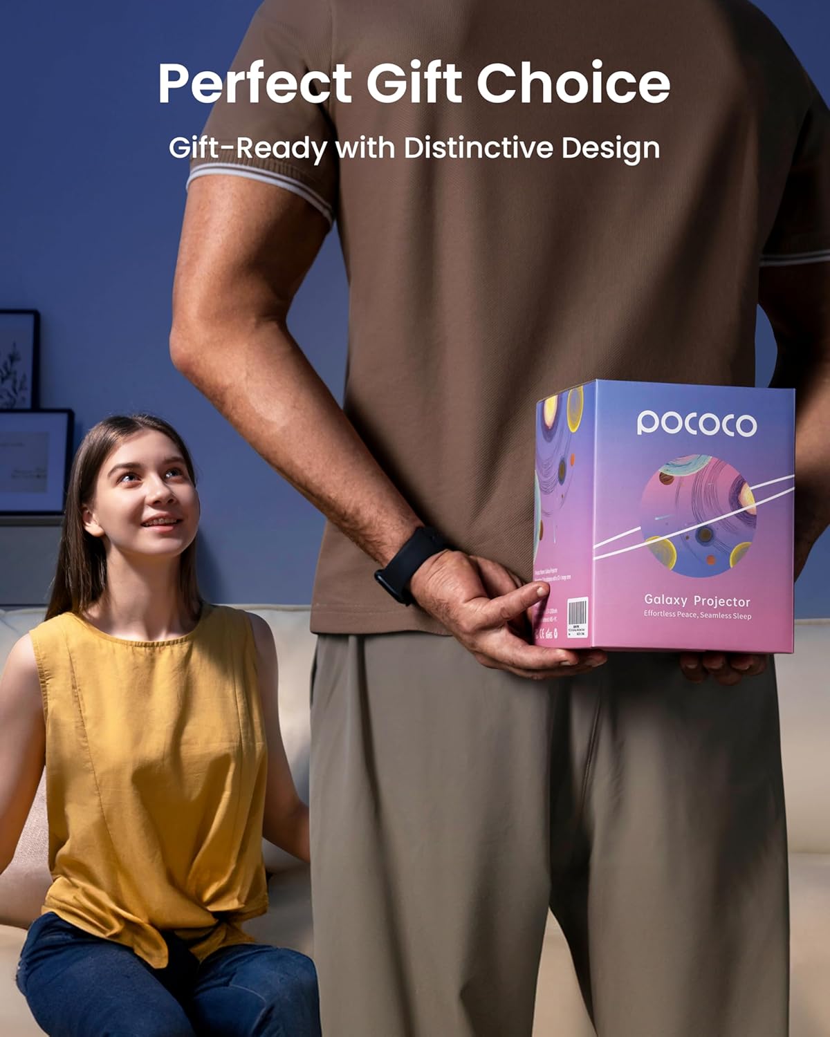 - A Trendsetter in Gifting: Choose the POCOCO Star Projector Night Light, a gift that's capturing hearts across social media. Whether it's an anniversary surprise for your boyfriend/girlfriend or a birthday treat for your child, it's the perfect choice. Available in stylish blue-pink gradient, mysterious black, pure white, and sparkling silver. There's always one for you