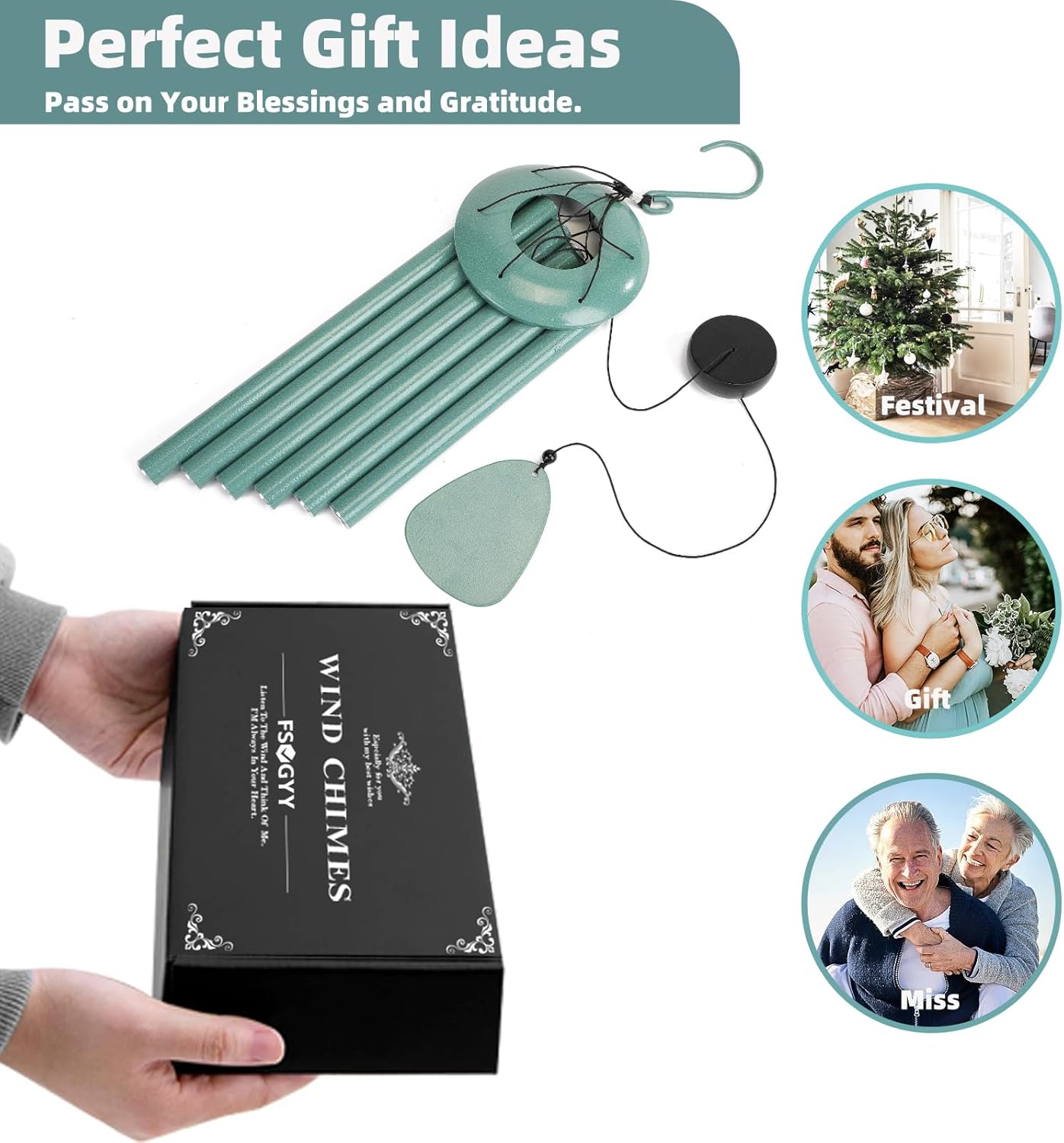 - Best Gift - Every gift has a touching story behind it, we receive every day thanks from our customers who choose FSVGYY outdoor wind chimes as housewarming, wedding, anniversary, birthday, memorial or funeral gifts, beautiful The package comes with a greeting card, allowing customers to fully convey their wishes and love. Choose FSVGYY wind chimes and you won't let them down.