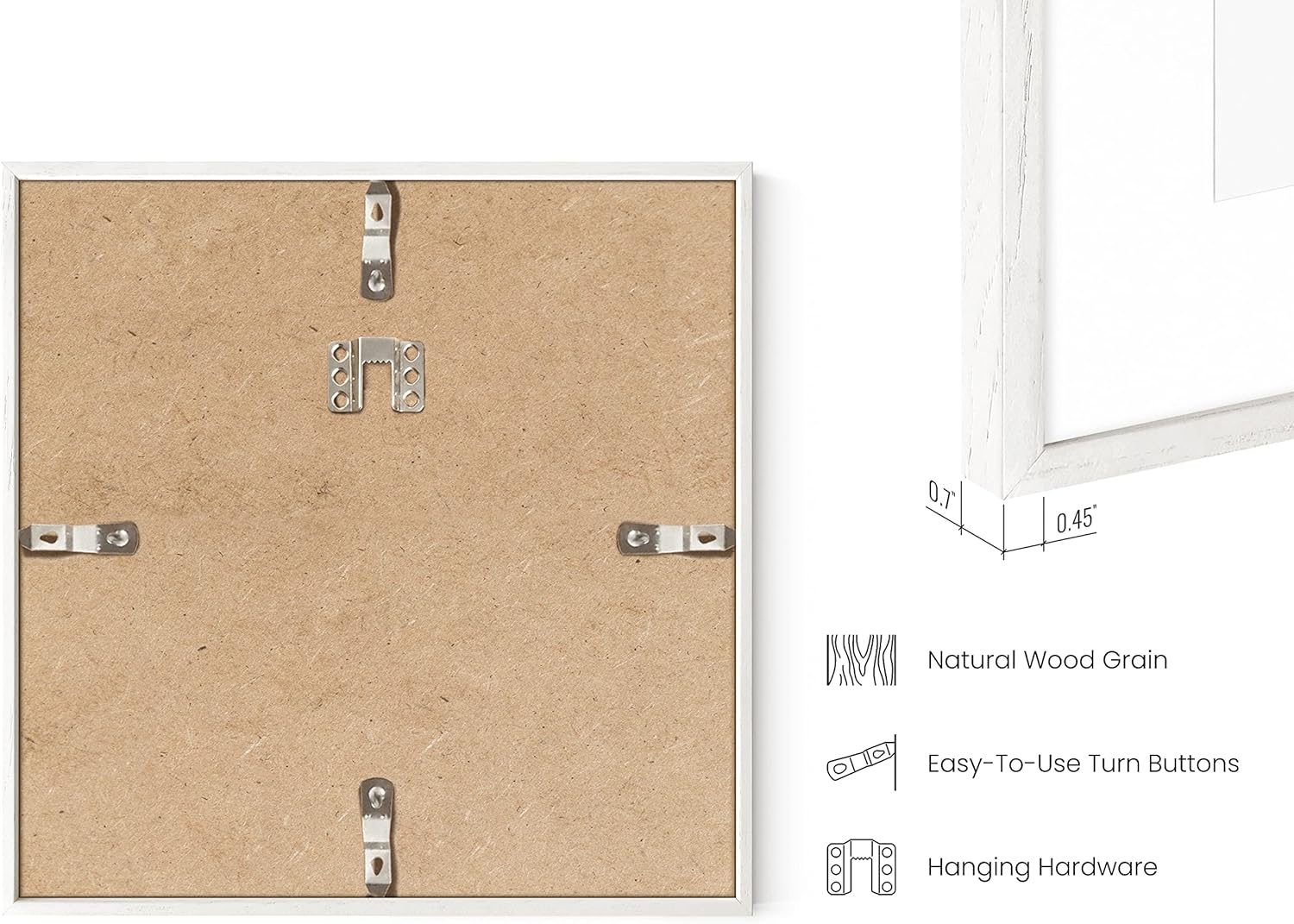- SATISFACTION GUARANTEE: Our in-house team ensures every large wood picture frame poster white order passes our quality inspection to minimize misprints and order defects. We want you to shop our 8 x 8 picture frames with confidence, so we offer a hassle-free return guarantee. If you're not satisfied with your purchase, let us know, and we'll be more than happy to offer you a replacement