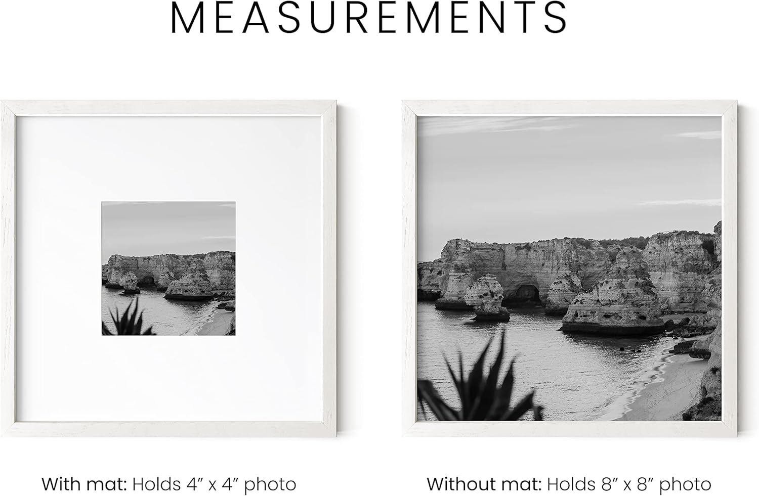 - WOODEN PICTURE FRAMES WHITE: Our 8 x 8 frame white wood set is meticulously constructed using natural oak wood, known for its timelessness and durability. The slim profile of the white frames gallery wall frame set effortlessly blends into any interior decor, adding a contemporary touch. The clean lines and sleek design make the 4 picture frame white poster frames with matting a perfect choice for those seeking a stylish, understated display solution