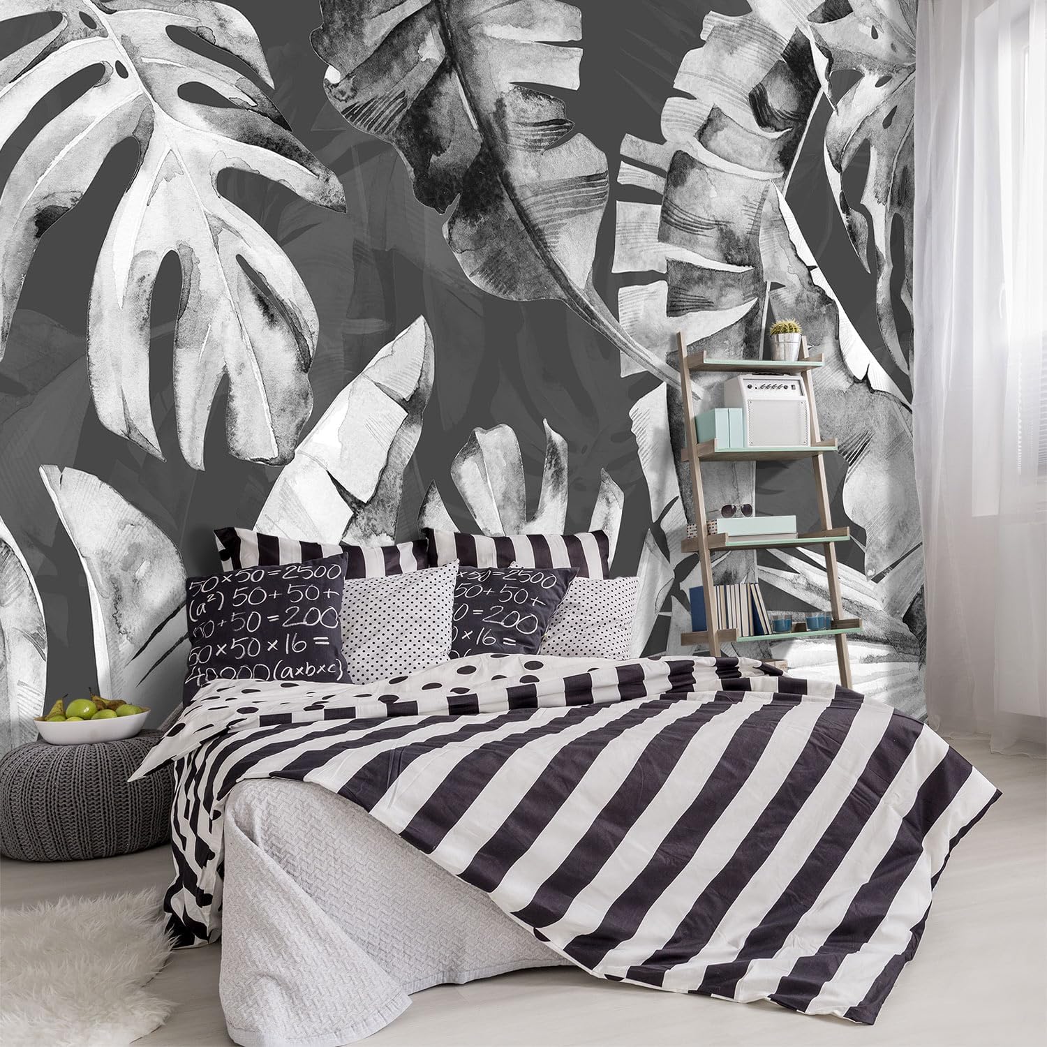 -Tropical Botanical Grey Banana Leaf Fabric Wallpaper Living Room Bedroom Bathroom Plant Large Wall Mural- 137"x96"( not Peel and Stick)