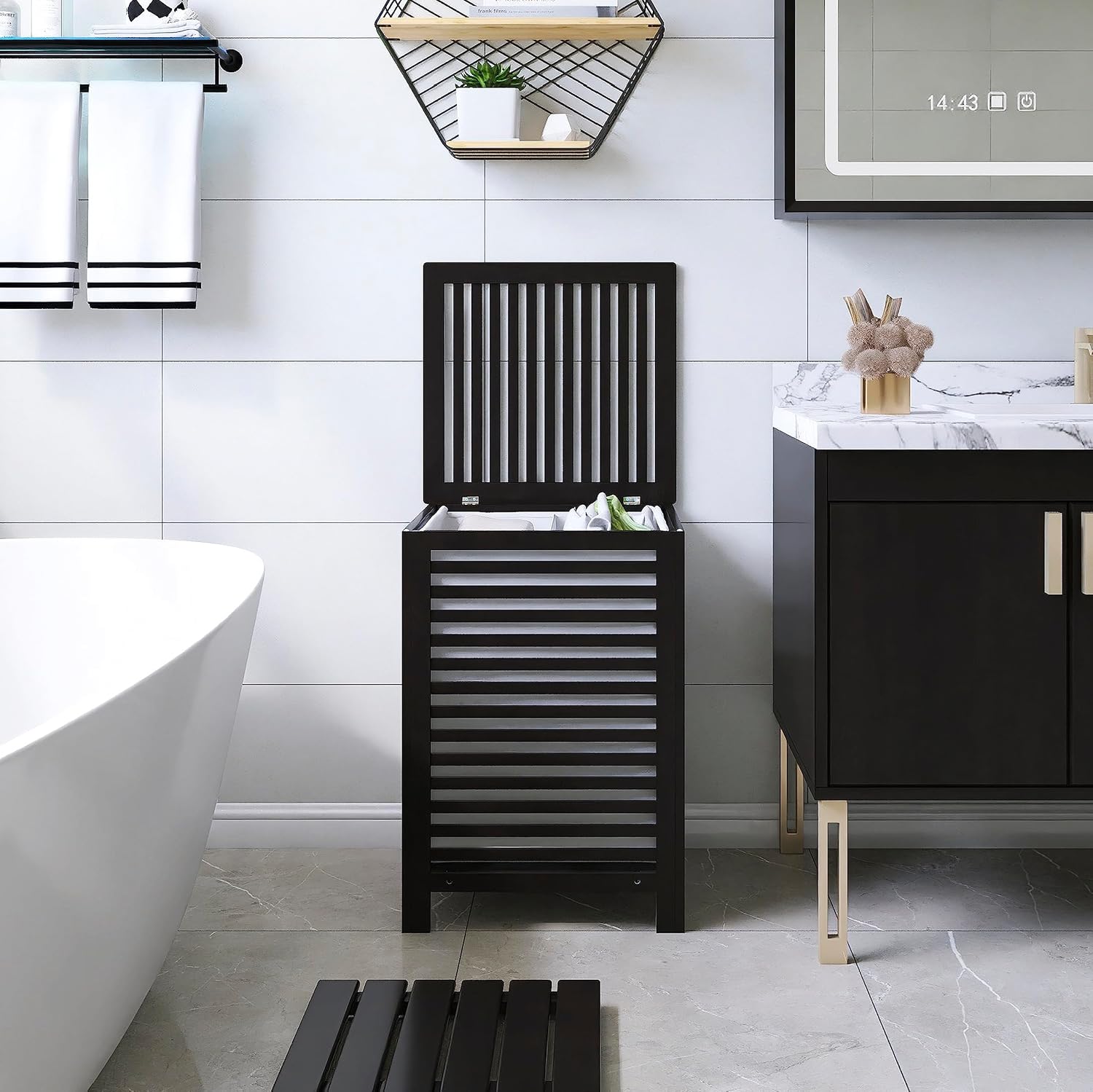 - β REMOVEABLE LINER BAG: The liner bag divided into two storage spaces is removable. When you need to do laundry, just open the lid, lift the handle of the inner bag, and carry it next to the washing machine. Very convenient for transportation from the laundry basket to the washing machine