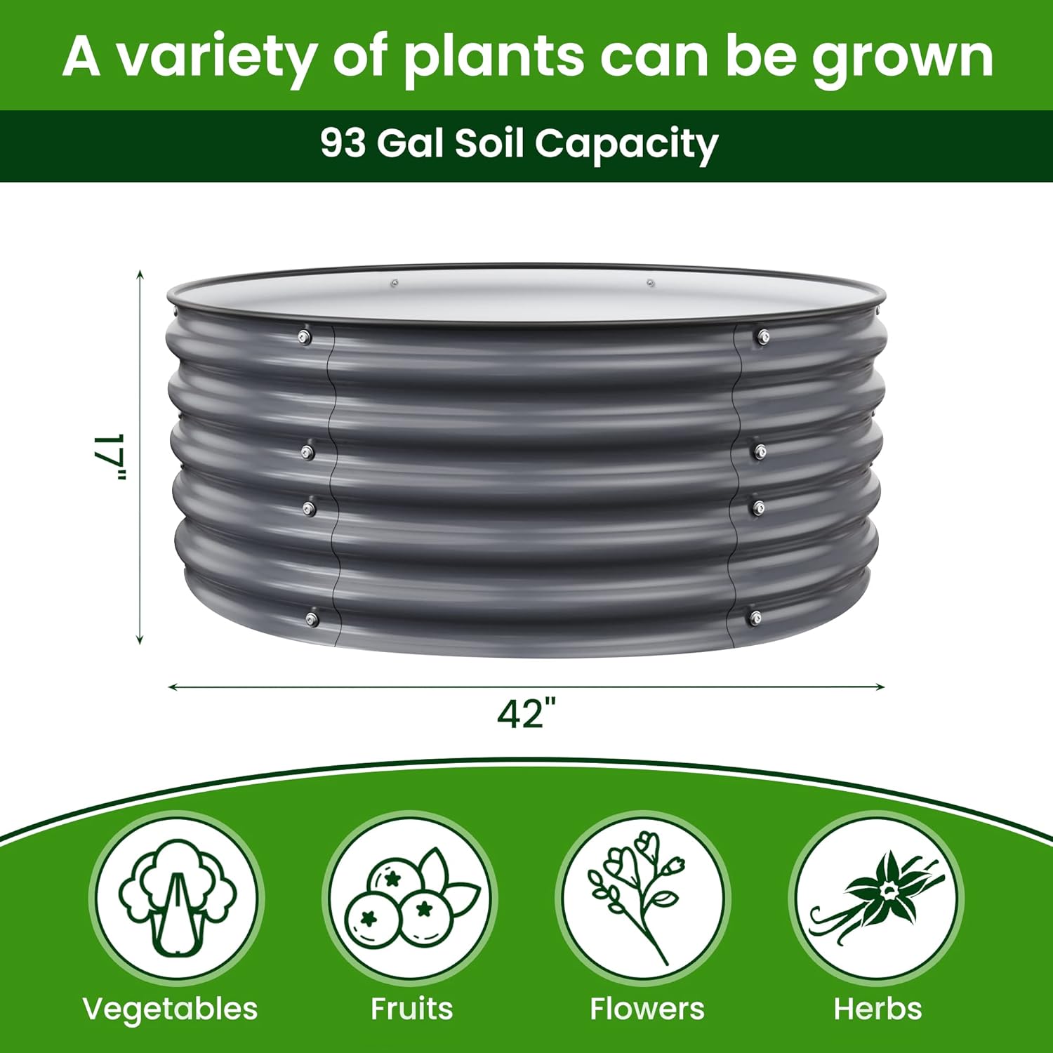 Round Raised Garden Beds, 42''x42''x17''Outdoor Galvanized Garden Planter Box for Vegetable Fruits Flower Herb (Deep Grey)
