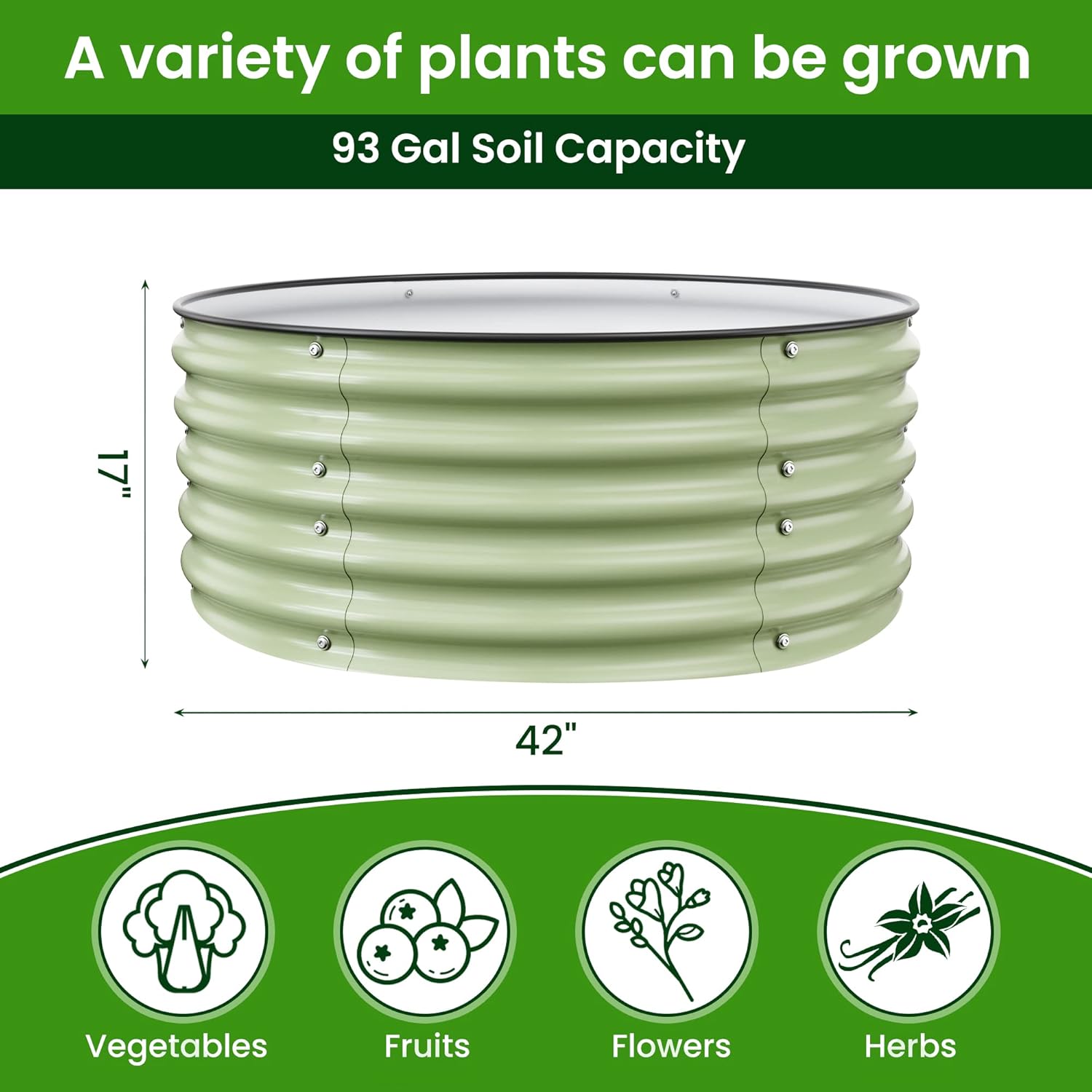 Round Raised Garden Bed Kit, 3.5x3.5x1.4Ft Outdoor Zinc-Aluminum-Magnesium Metal Flower Beds Stainless Steel Patio Ground Planter for Planting Vegetables (Light Green)