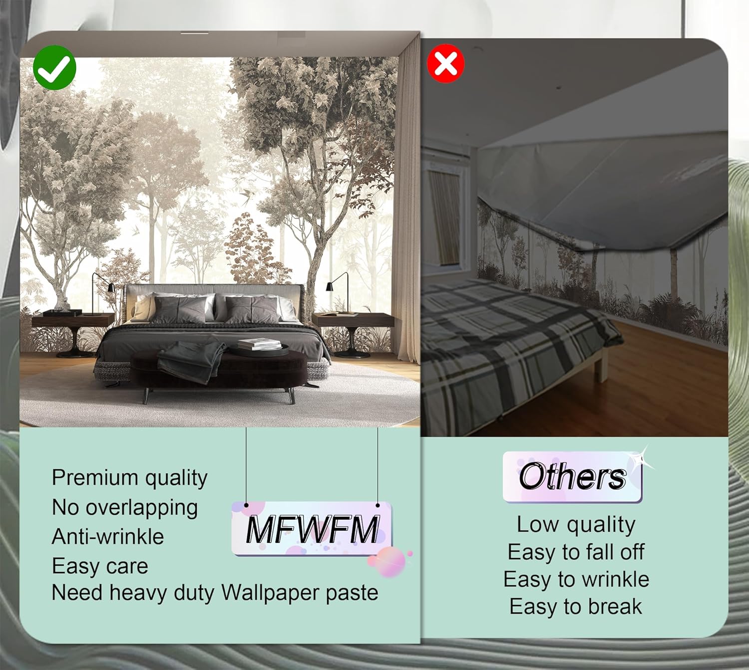 Vintage Forest Wallpaper Nature Wall Mural Wallpaper for Bedroom Living Room (Not Peel n' Stick)