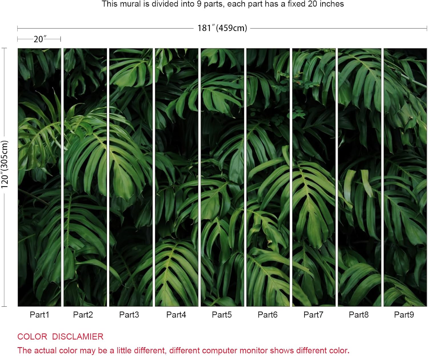 - Dimension:Approx. 181"x120" (Width x Height). This mural wallpaper is cut into 9 strips for easy installation.