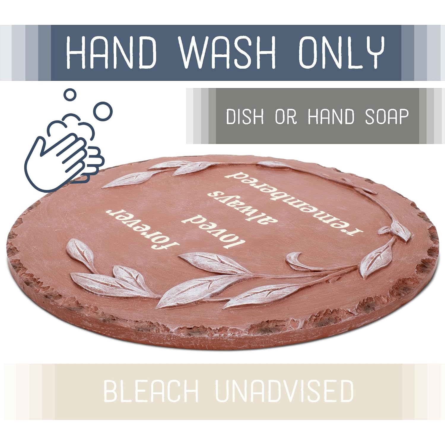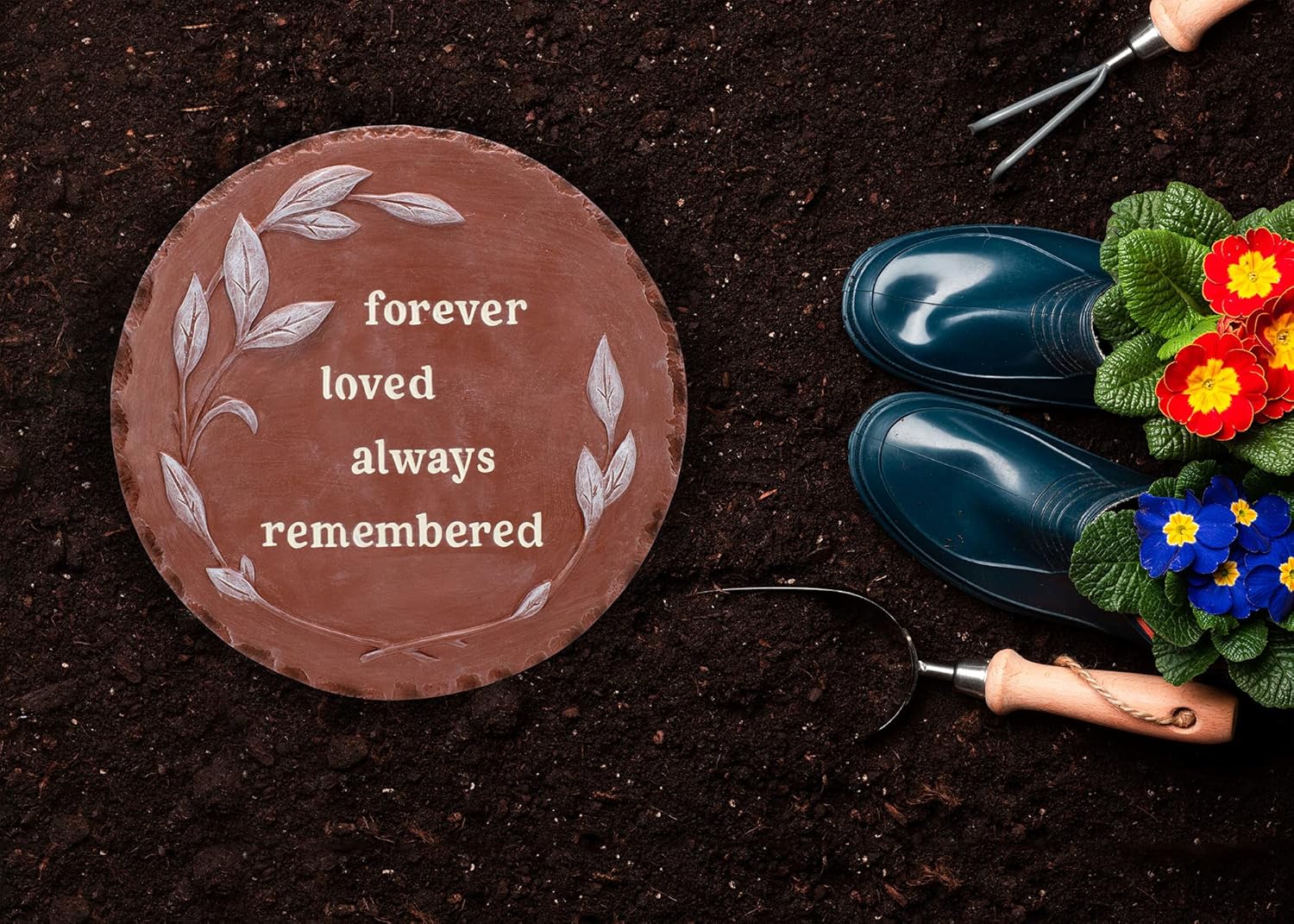 - CLASSIC NATURE INSPIRED DESIGN β Features a heartfelt saying that reads, "Forever Loved, Always Remembered". Brighten up your indoor and outdoor spaces with this beautiful leaf pattern stepping stone. Dimensional laurel wreath design adds interest to your dΓ©cor.