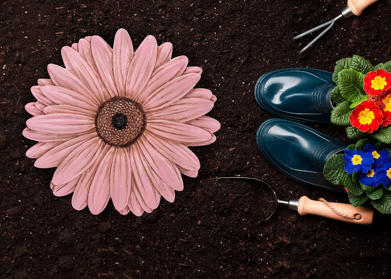 - FLORAL NATURE INSPIRED DESIGN β Brighten up your indoor and outdoor spaces with this beautiful gerbera daisy blossom, shaped stepping stone. Dimensional design will add interest to your dΓ©cor and express a playful personality.