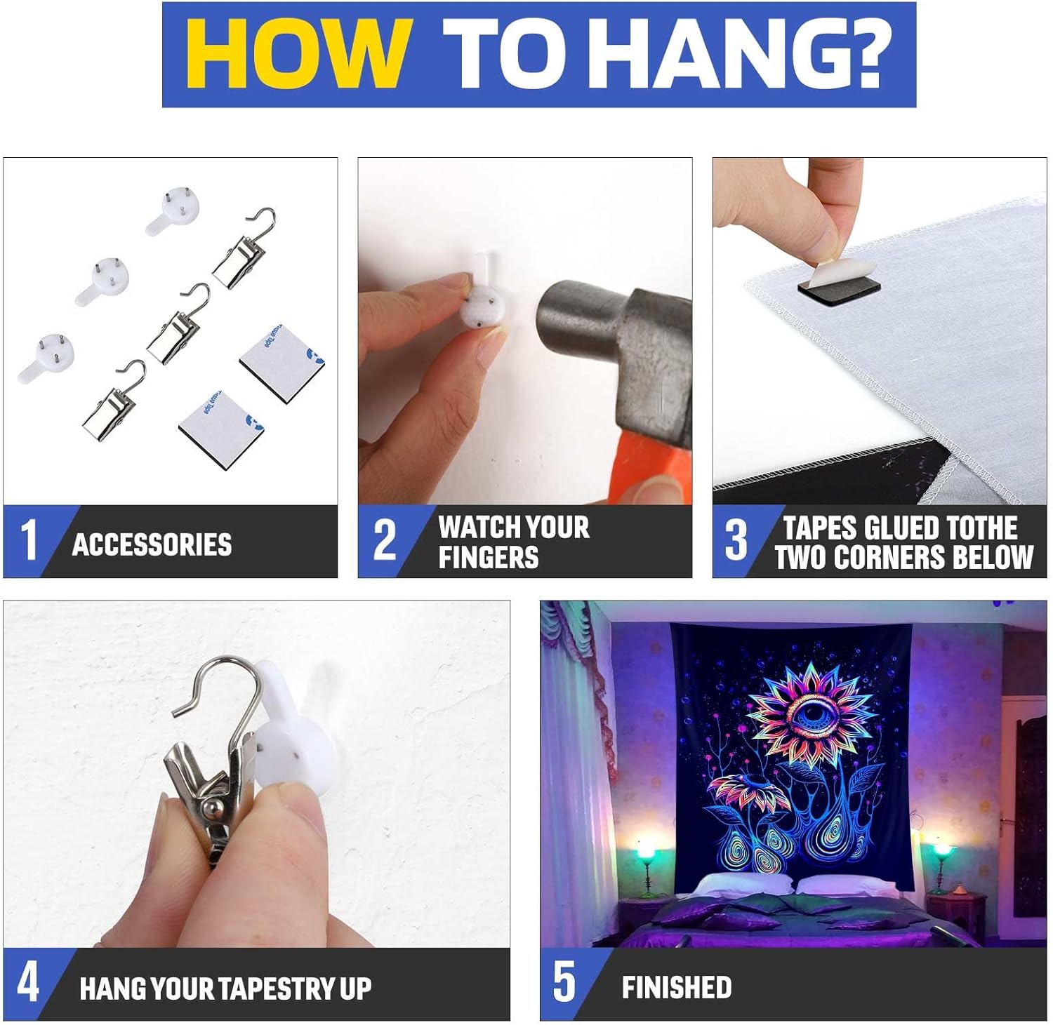 - š Brighten Up Your Space: ADDWel blacklight tapestry adds a vibrant and glowing touch to any room. ADDWel tapestry is printed with a UV-reactive ink that creates a neon-like effect under blacklight. Perfect for parties, raves, and other events that require a fun and unique atmosphere.