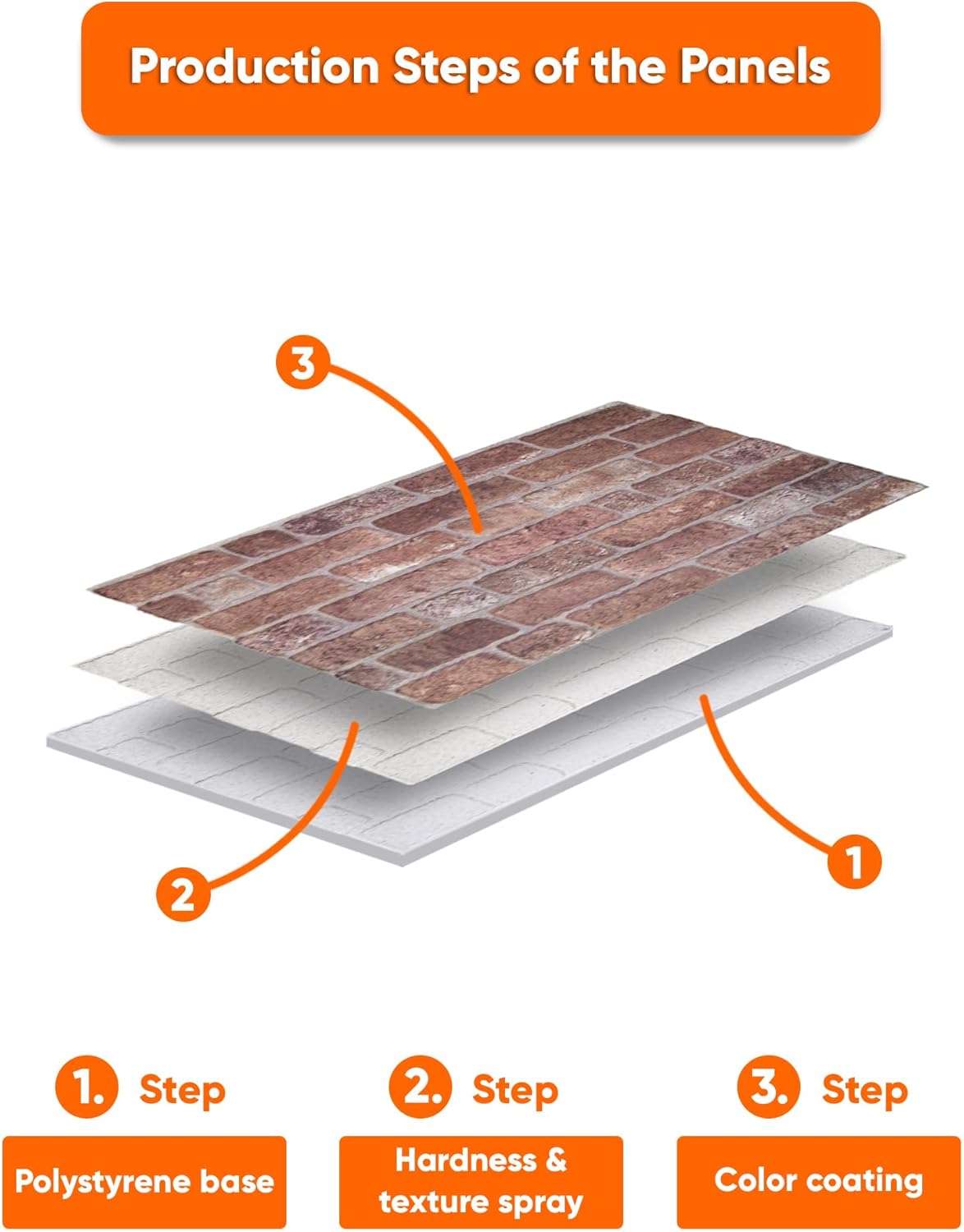 IZODEKOR 3D Wall Panels Brick Effect - Cladding, Stone Look, Styrofoam Facing for Living Room, Kitchen, Bathroom, Balcony, Bedroom and Back of Counter | Old Castle (3 Piece Panel) | Covers 16 sq ft