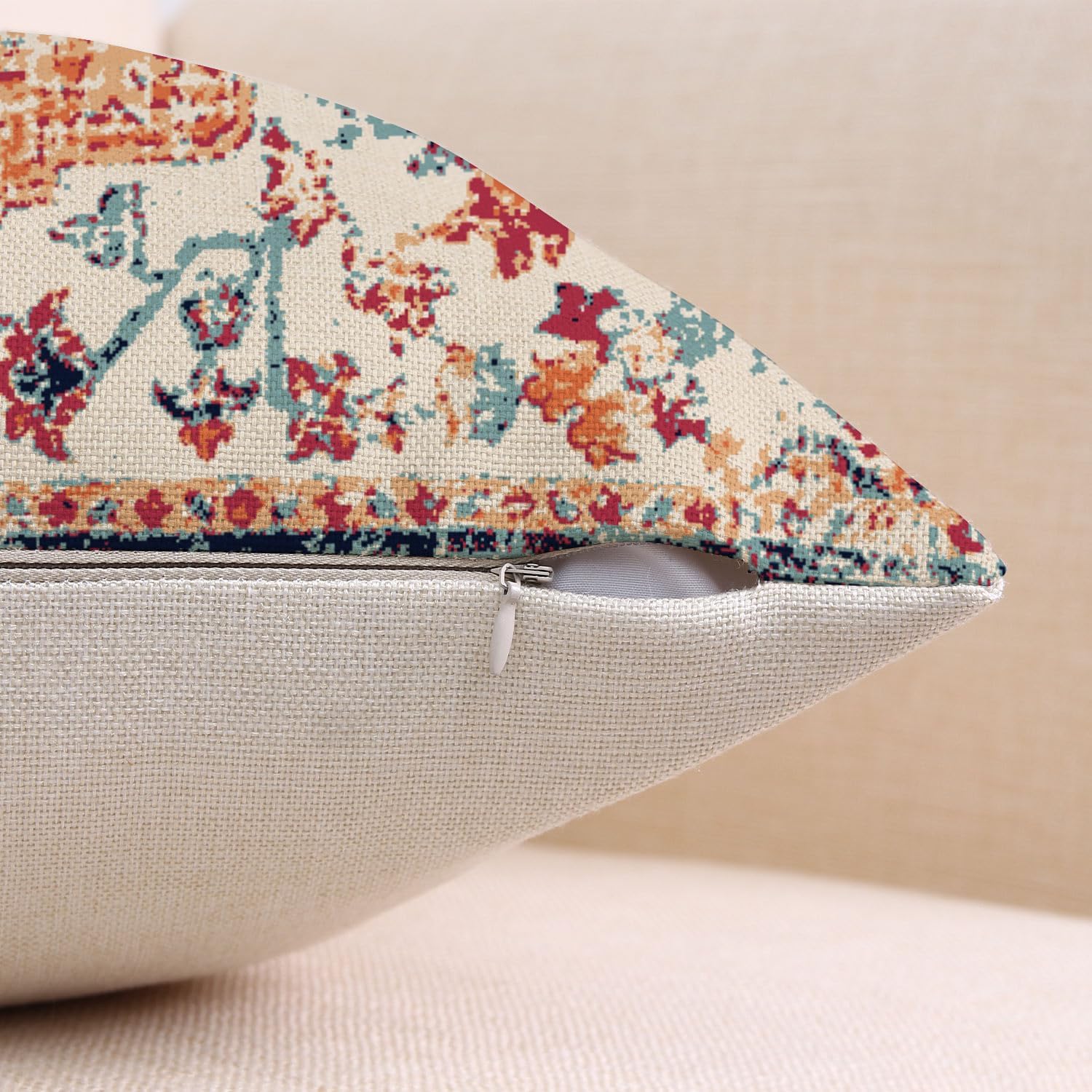 - Vintage bohemian floral pattern printed on front side only, solid beige back