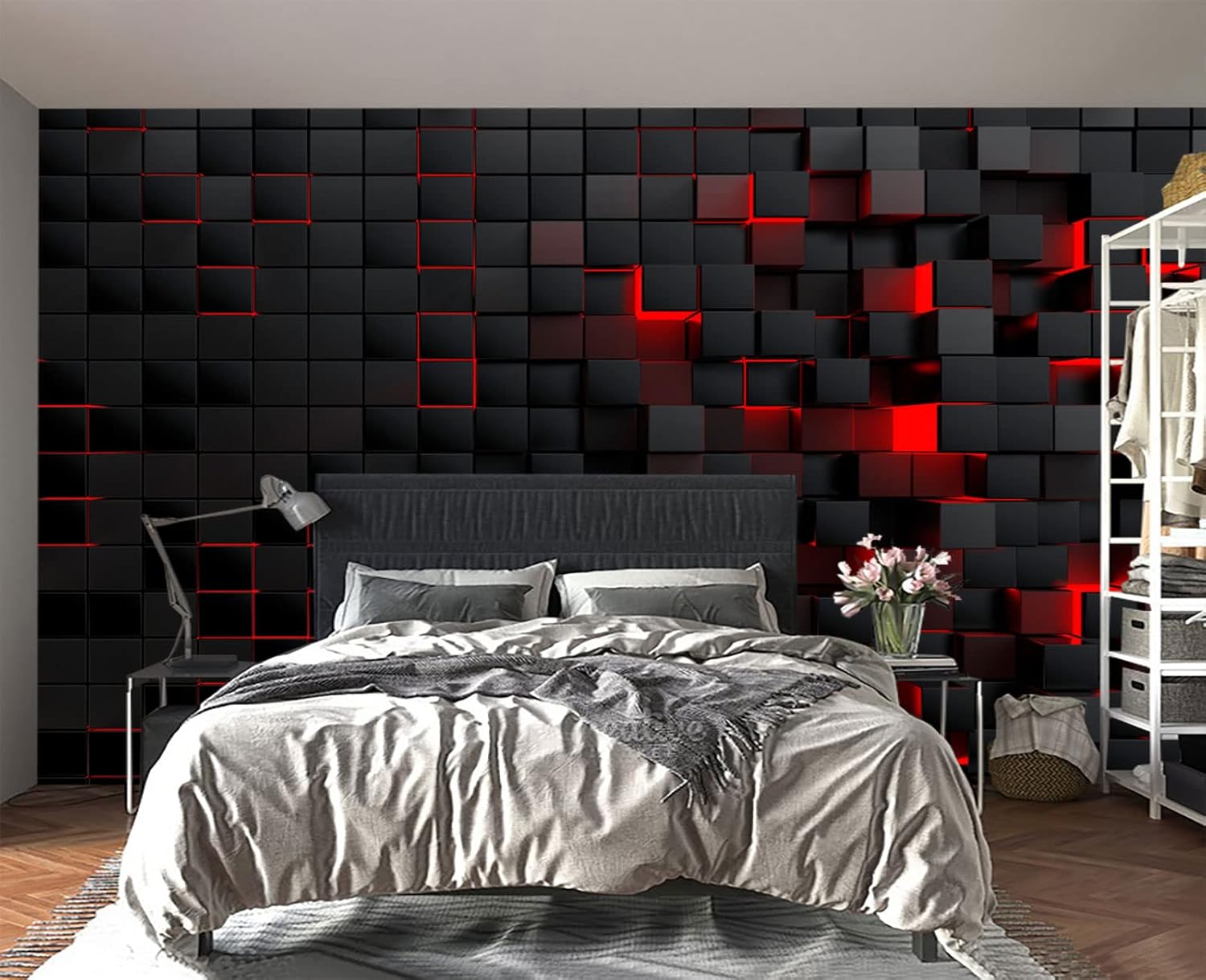 Tech Red Blocks Wall Mural Wallpaper for Bedroom 103" x 69"