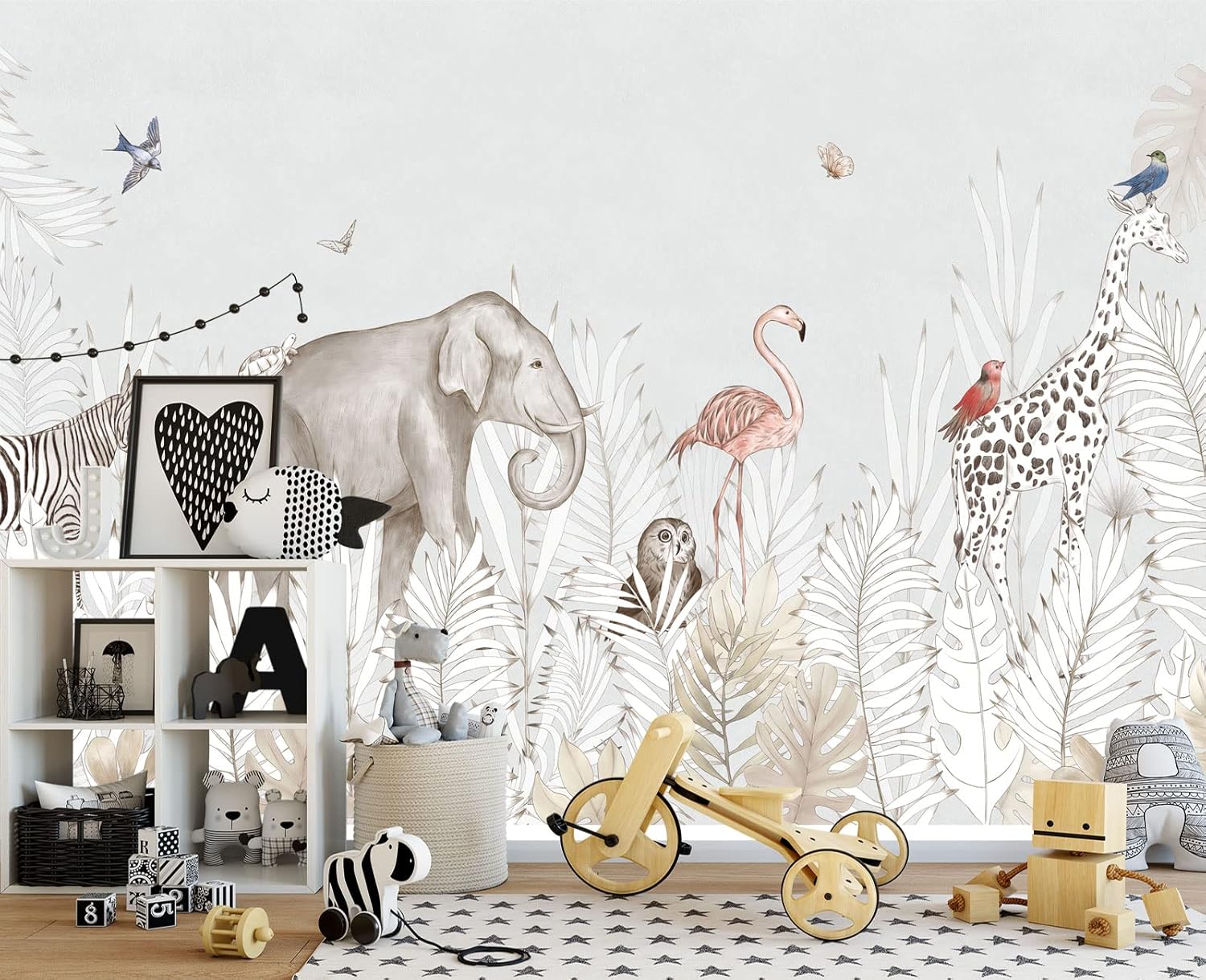 Elephant Zebra Animal Nursery Wallpaper Wall Mural 178" x 117"