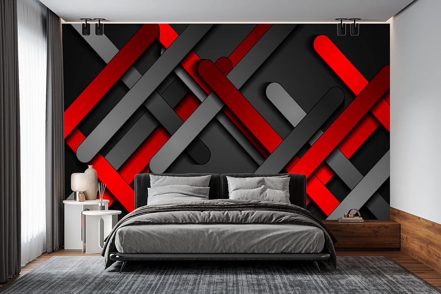 Red Black Metal 3D Wall Mural Wallpaper for Bedroom 137" x 100"