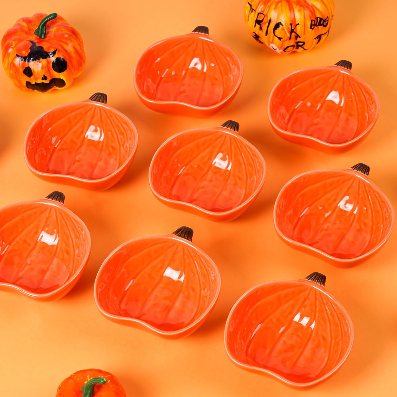 - What You Will Get:you will get 12 pieces of small pumpkin shape bowls, with detailed textures, bright orange colors, the highly decorative bowl that will bring the atmosphere to your Halloween or Thanksgiving party