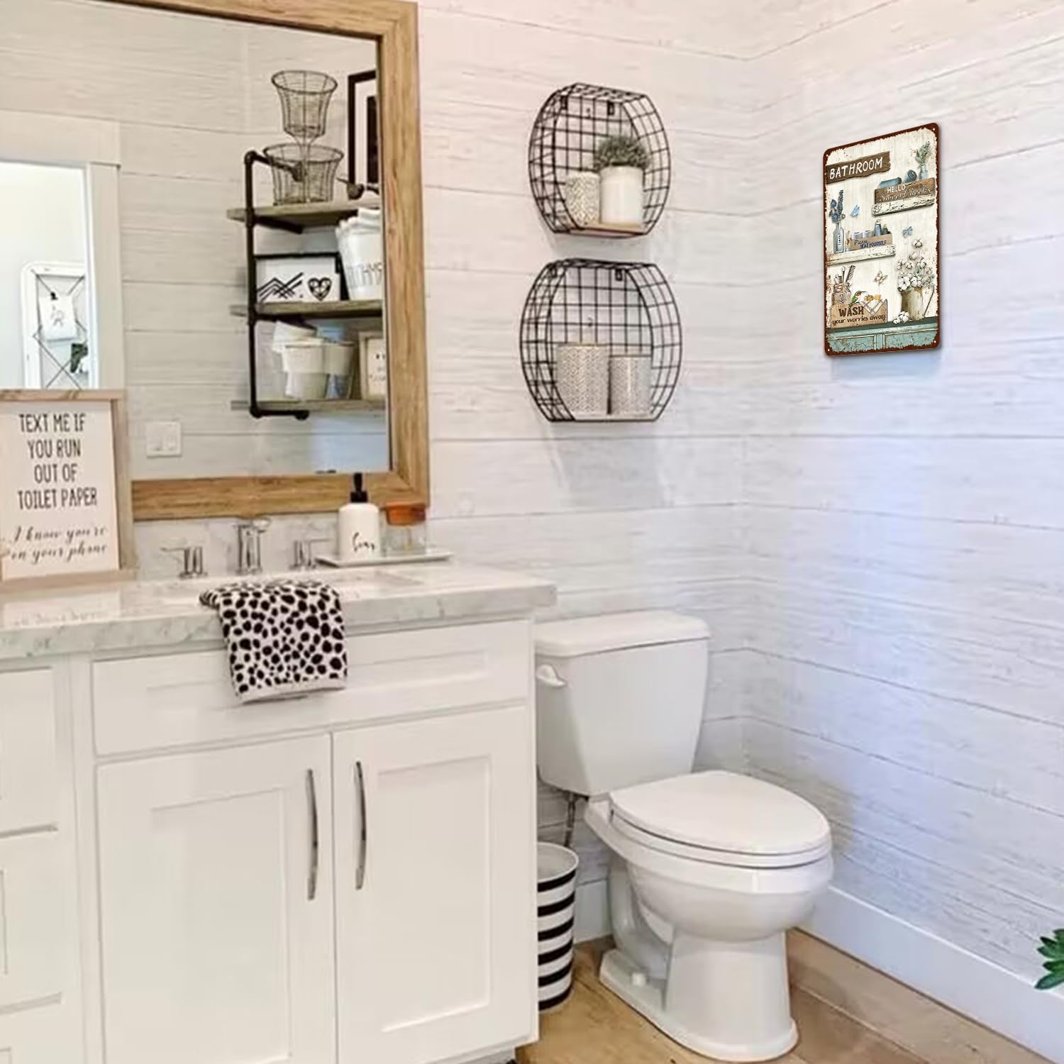 Vintage Farmhouse Bathroom Metal Tin Signs Rustic Flower Country Wall Art Decor 8X12 Inches