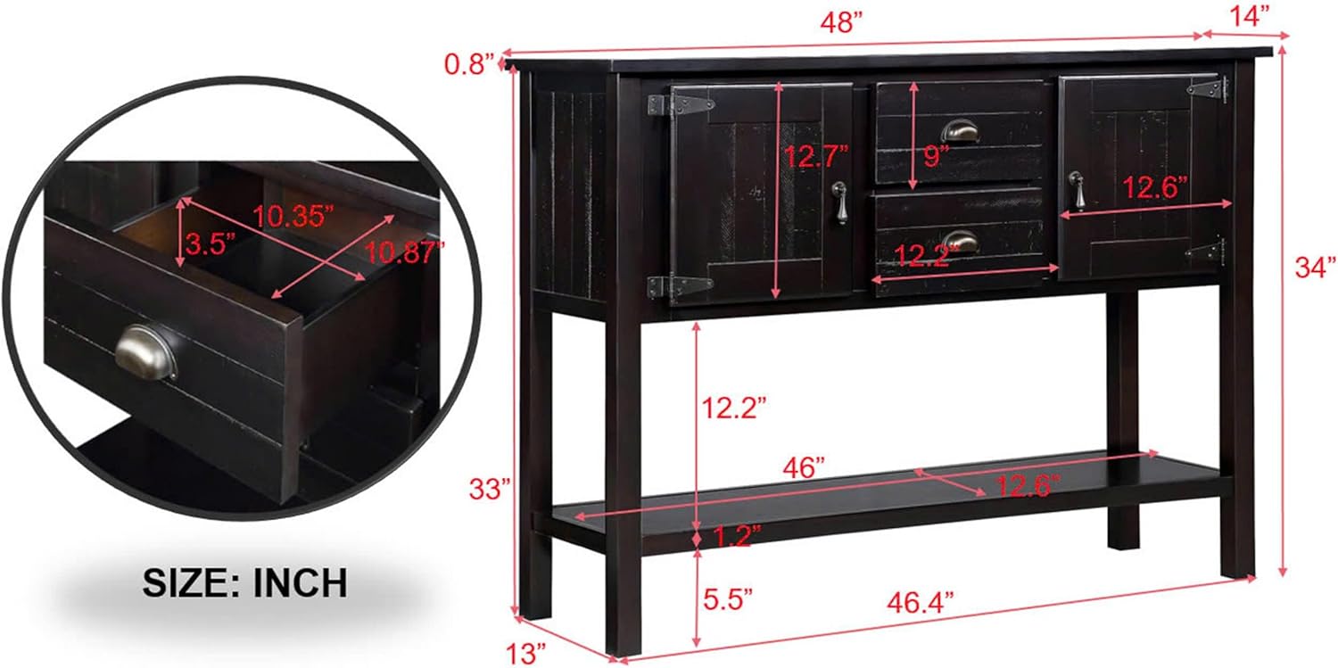 - ćRetro Sofa TablećThe console table 48 '' L* 14 '' W*34'' H .Solid Wood Sideboard Console Table features a retro design that adds a touch of vintage charm to your foyer, entryway, or dining room. Its classic aesthetic enhances the overall ambiance of your space.