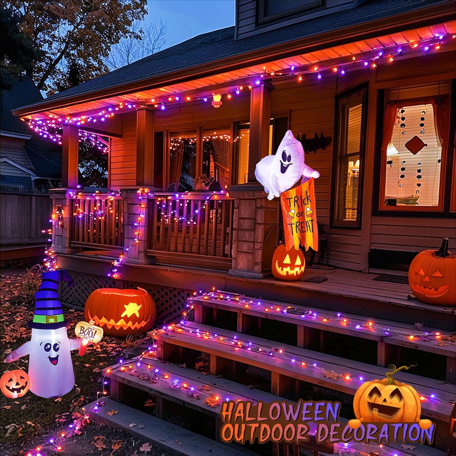 - What You Get: Unbox the Halloween Magic, Included in your package: 1x 600LED Orange and Purple Halloween Lights 1x UL Plug for Safe and Easy Setup 1x Instructions for Hassle-Free Assembly. Our Satisfaction Guarantee and Friendly Customer Service If you encounter any issues with our outdoor Halloween string lights, don't hesitate to reach out to us. We're here to ensure your Halloween festivities are filled with enchantment and spooky delights