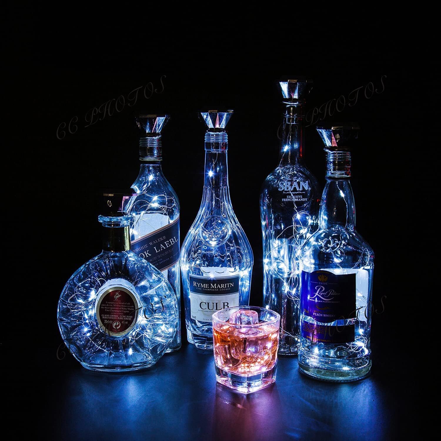- Easy To Use and Install -- Each Cork with an ON/OFF Switch. Our bottle lights are easy to fit into the top of the wine bottle. You don't have to drill a hole in the bottle. Just Simply Switch on the Lights and then insert in the bottles. A built-in light sensor ensure that it turns on at dusk and turn off by dawn automatically