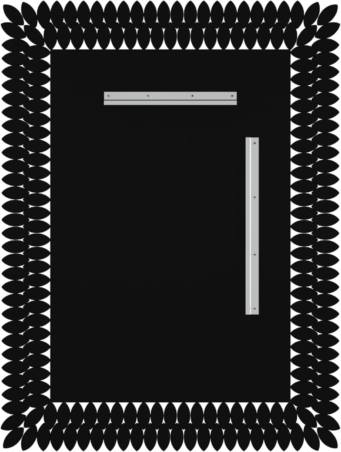 - HIGH QUALITY MIRROR. The product is comprised of a 12mm thick black MDF ? board and 4mm thick silver coated glass mirror with 1cm bevel. The solid and sturdy MDF back can support and protect the glass mirror, so it is difficult to break. Silver mirrors are characterized with clear, natural images and neutral reflection, which stand out from many other mirror products even from distance. Hang it as a bathroom vanity or above a dresser in a room. It really brings elegance to any wall or space.