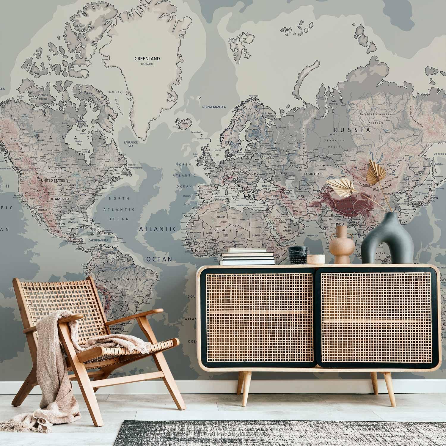 artgeist Premium Wall Mural World Map 79x55 in - XXL Non-Woven Wallpaper Fleece Wall Decor Photo Print Picture Image Design Home Map of The World k-A-0061-a-c