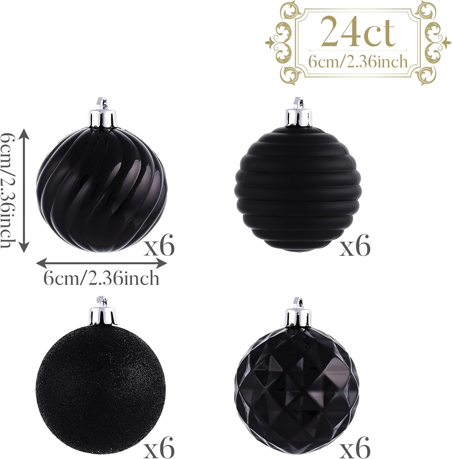 - 【Exquisite Craftsmanship】Enjoy a variety of finishes including shiny, matte, glitter, and textured. Each ball, measuring 2.36 inches, is crafted with a nearly invisible seam, enhancing its elegant appearance