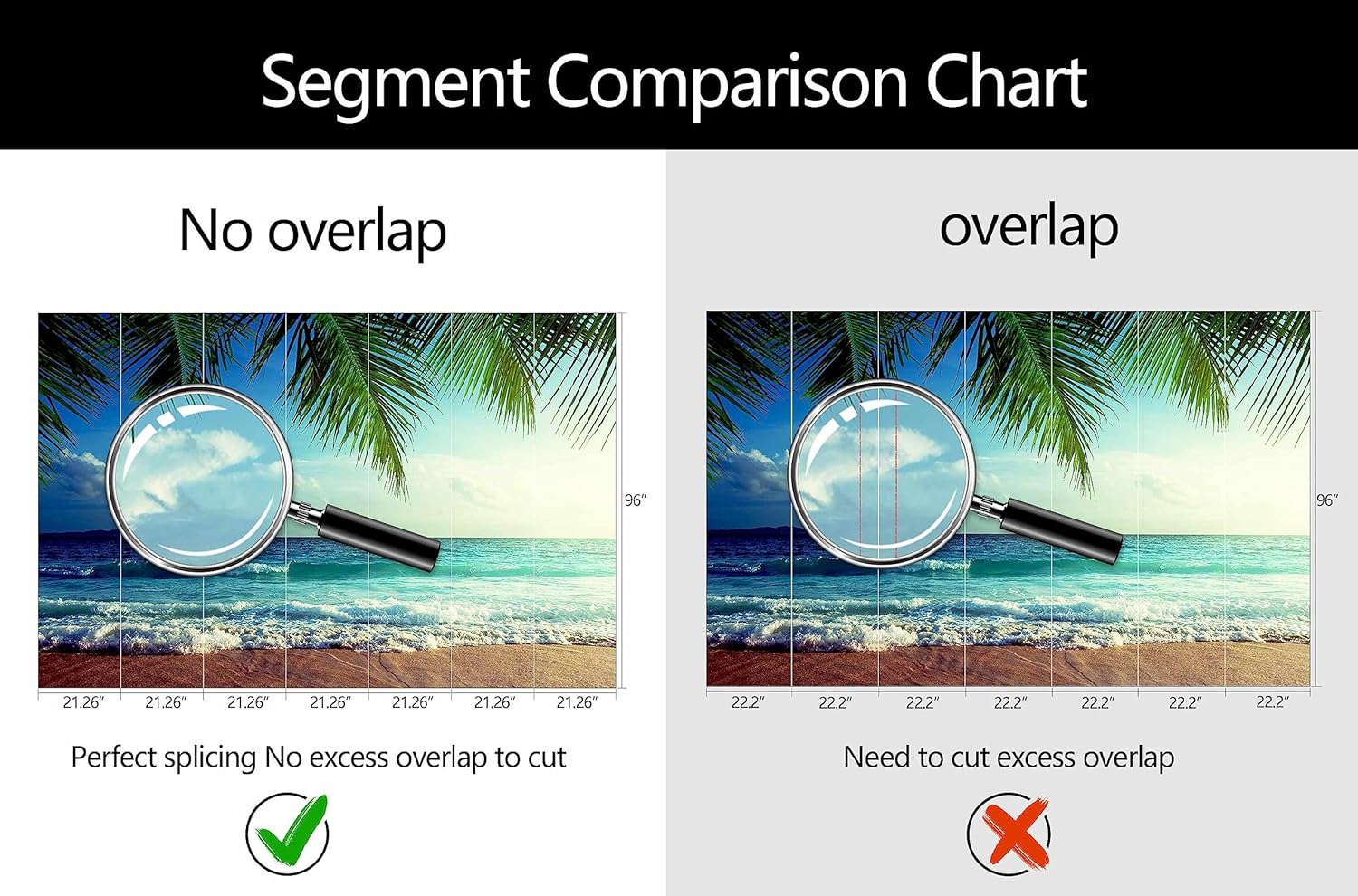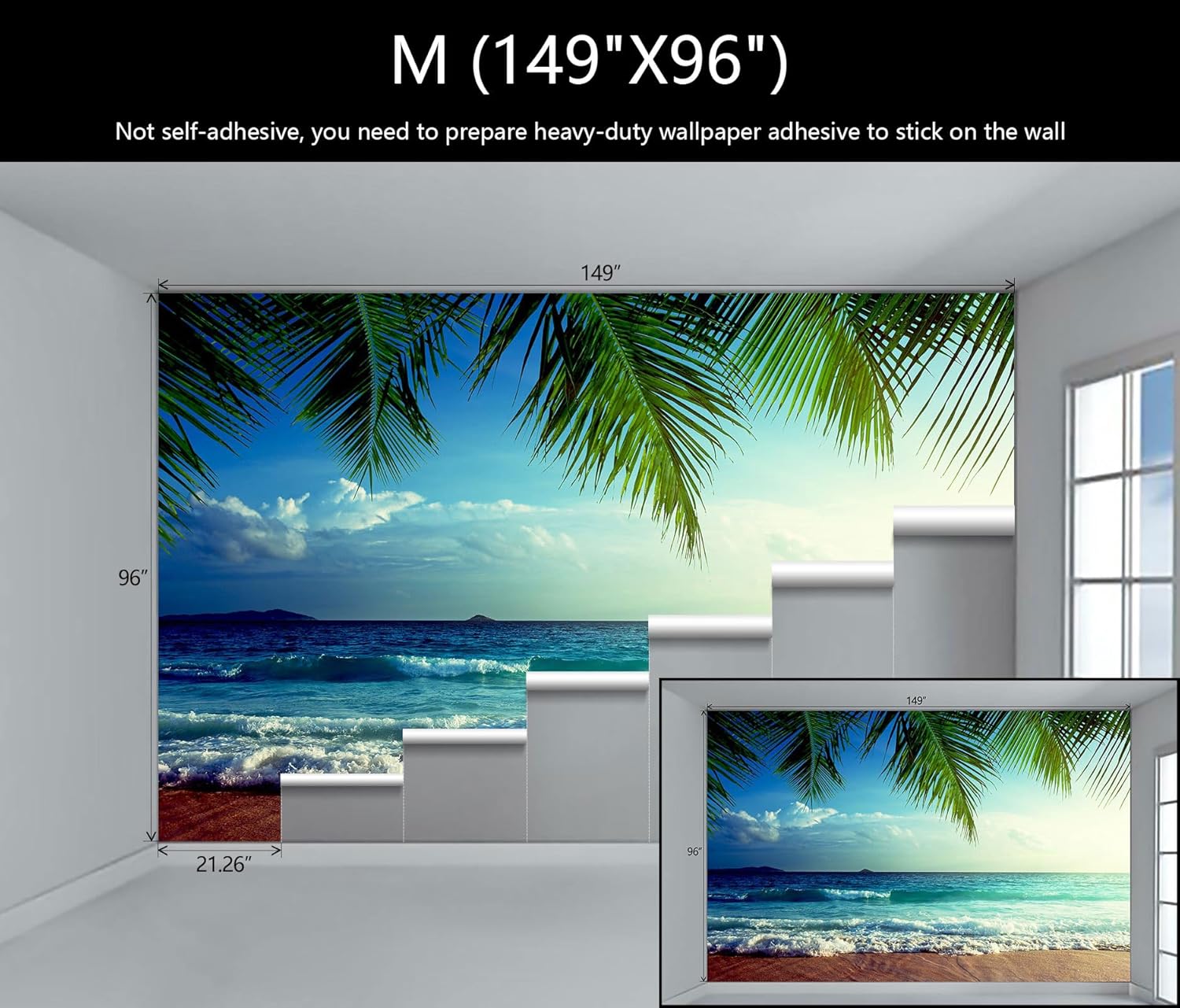 - Mural Size: The total size of this mural wallpaper is 149" x 96" / 378CM x 244CM (W x H), cut into 7 pieces, each measuring 21.26" x 96", for easy installation.