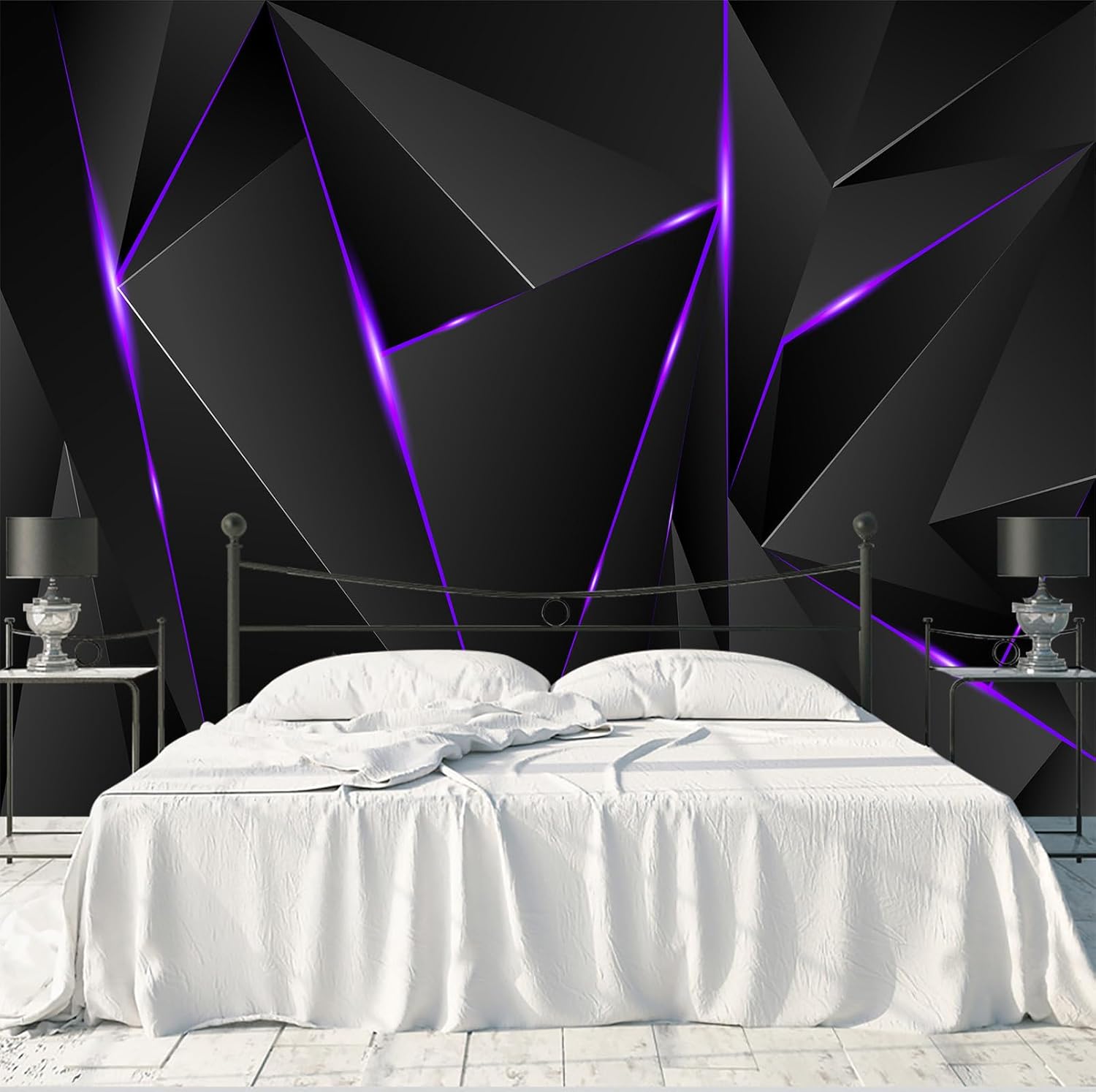 WFBHUA-3d Black Geometric Wallpaper Purple Lines Large Background Wall Mural for Bedroom Living Room (No Peel and Stick)