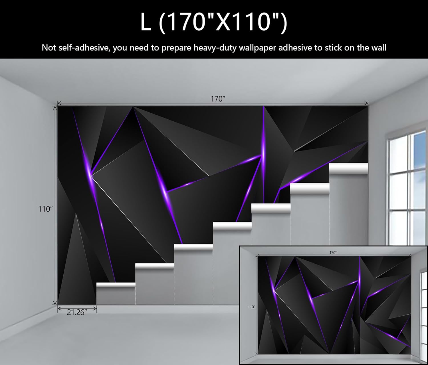 WFBHUA-3d Black Geometric Wallpaper Purple Lines Large Background Wall Mural for Bedroom Living Room (No Peel and Stick)