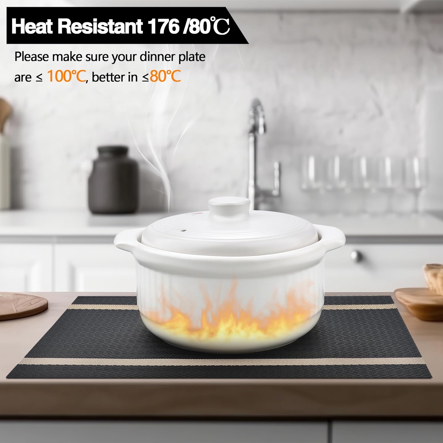 - Heat Resistant: Please make sure your dinner plate are ⤠100â, better in â¤80â. It can prevent the table from slipping and scalding the countertop. These beautiful stylish vinyl place mats to add more fun to your dining table
