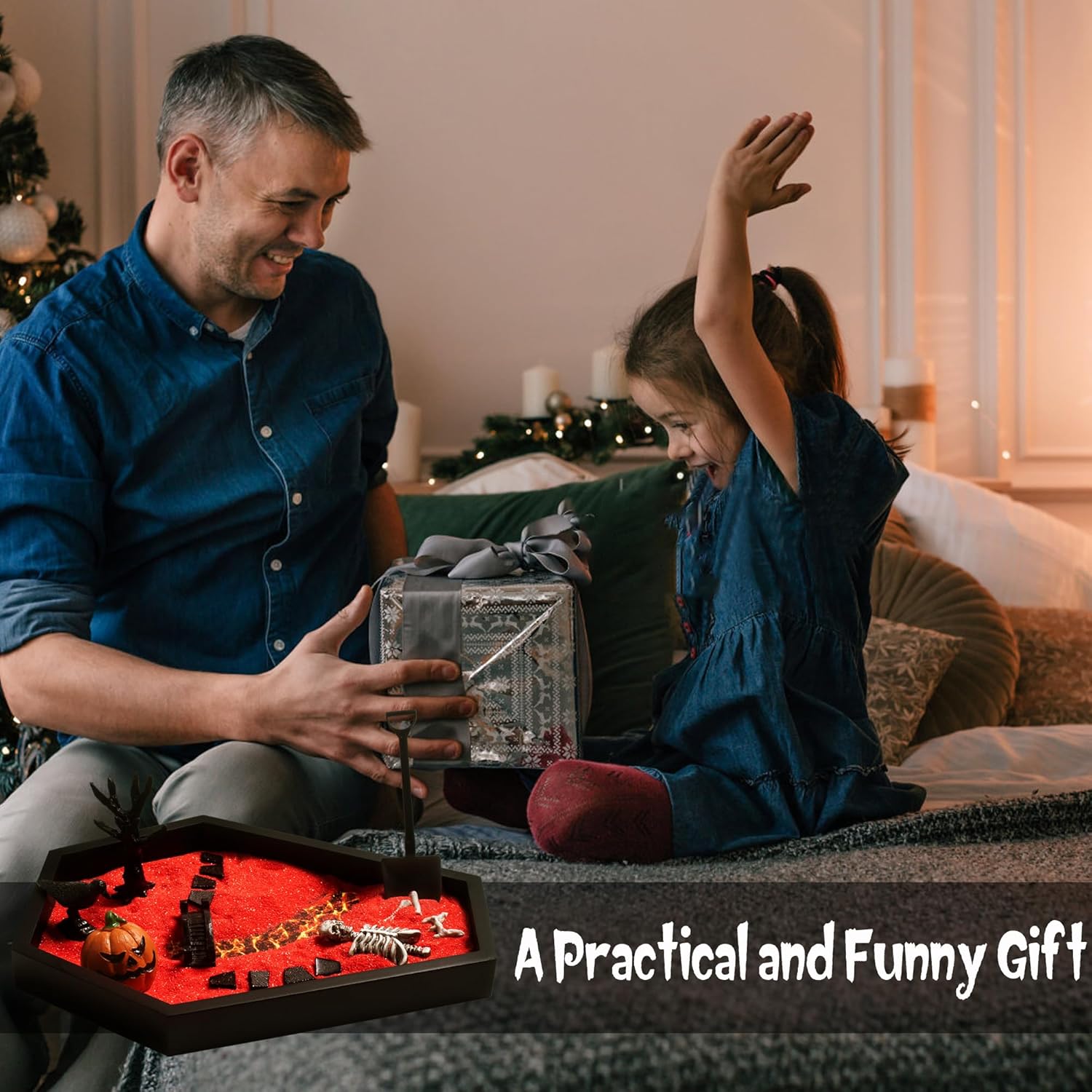 - š DIY: Our Halloween Coffin Zen Garden is designed to resemble a traditional coffin.This product has 9 accessories including 1 Gothic coffin tray, 1 bridge, 1 bag of red sand, several pieces of molten rock, crows, a shovel, a dead tree, a half skeleton, and a base image of molten rock. On the special holiday of Halloween, you can place your imagined hell world, the intersection of life and death, and so on in any corner of your home to present the atmosphere of Halloween you want. Any artistic conception you want to express can be created by yourself.