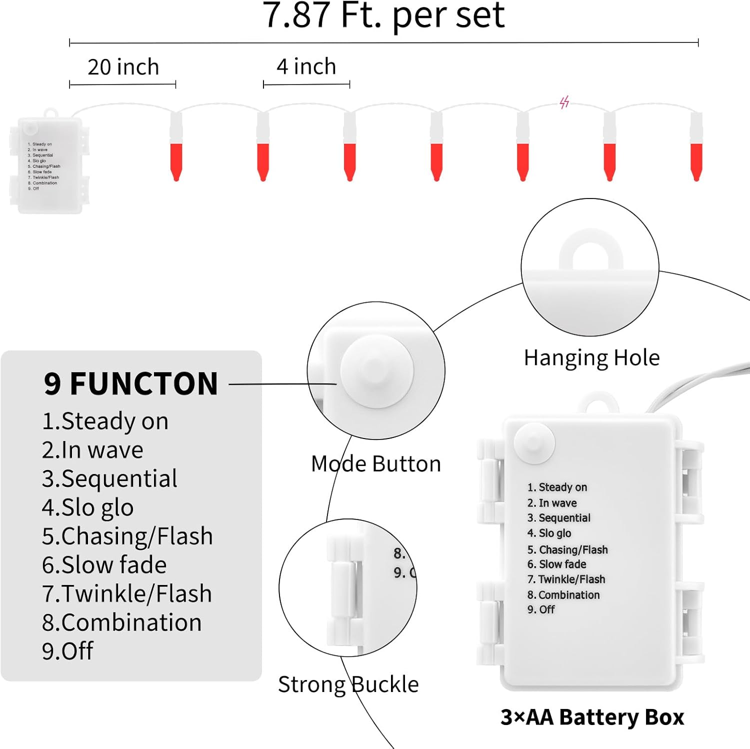 - 【Manual Operation】Select from 8 stunning lighting effects to customize your occasions and events. With a simple button press, choose from combinations, wave, sequential, slow glow, chasing/flash, slow fade, twinkle/flash, or steady on