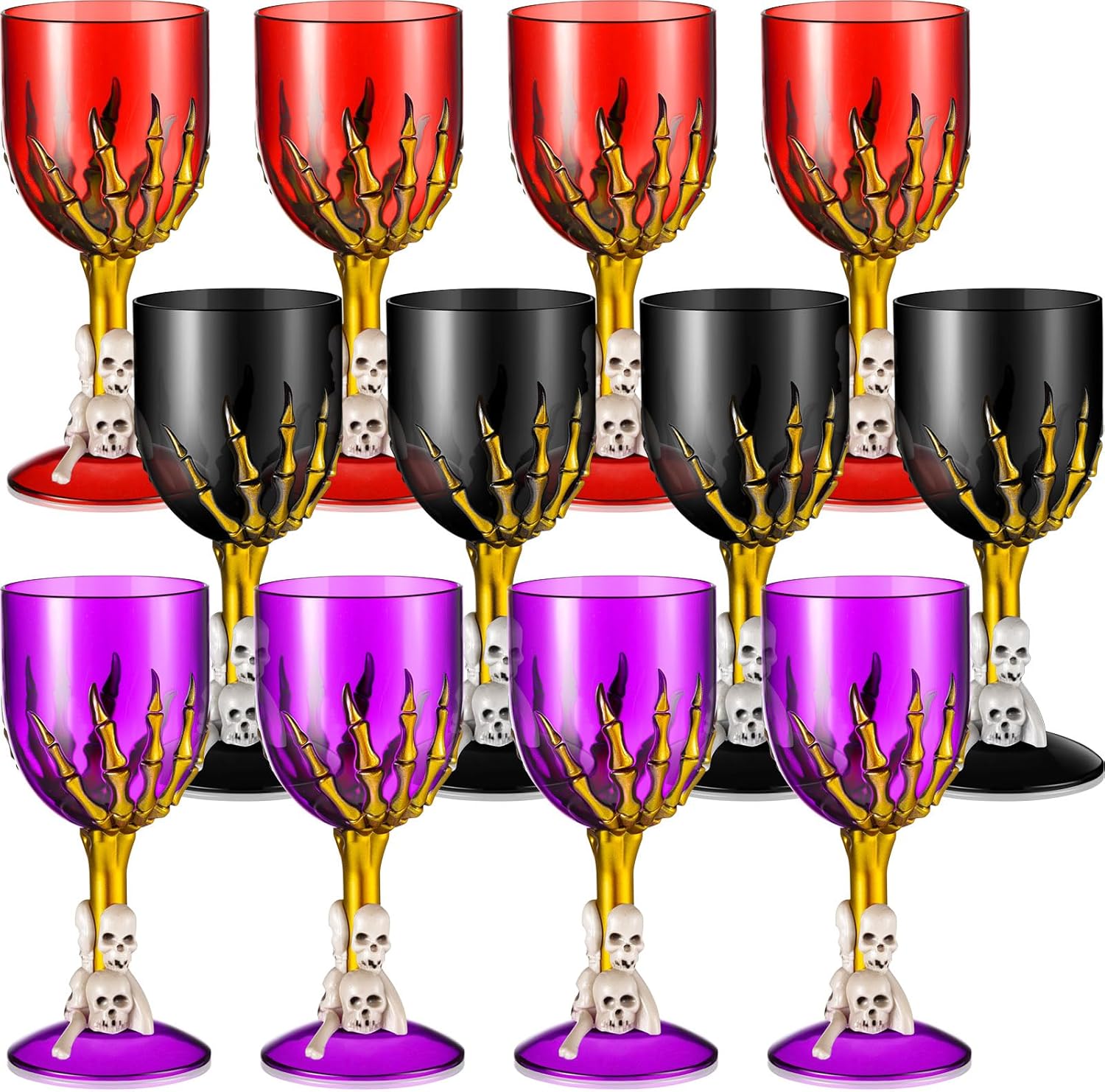 Sliner 12 Pcs Halloween Skull Claw Goblet Wine Cup 10 oz Gothic Skull Wine Goblet Skeleton Design Cup Creepy Claw Mug for Halloween Party Bar Fancy Haunted House Martini Drinking KTV Store
