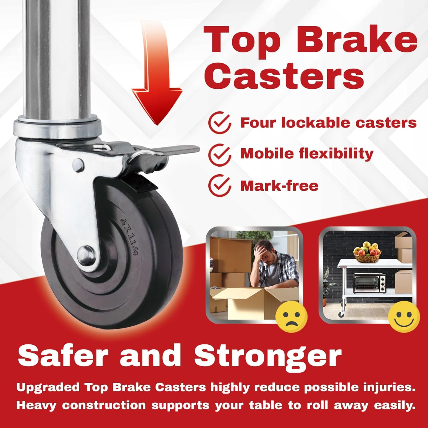 - Premium Design: The heavy-duty table with 18 gauge #430 stainless steel has extraordinary anti-corrosion abilities, which makes it stand decades. The superior weight capacity up to 400 lbs for the top