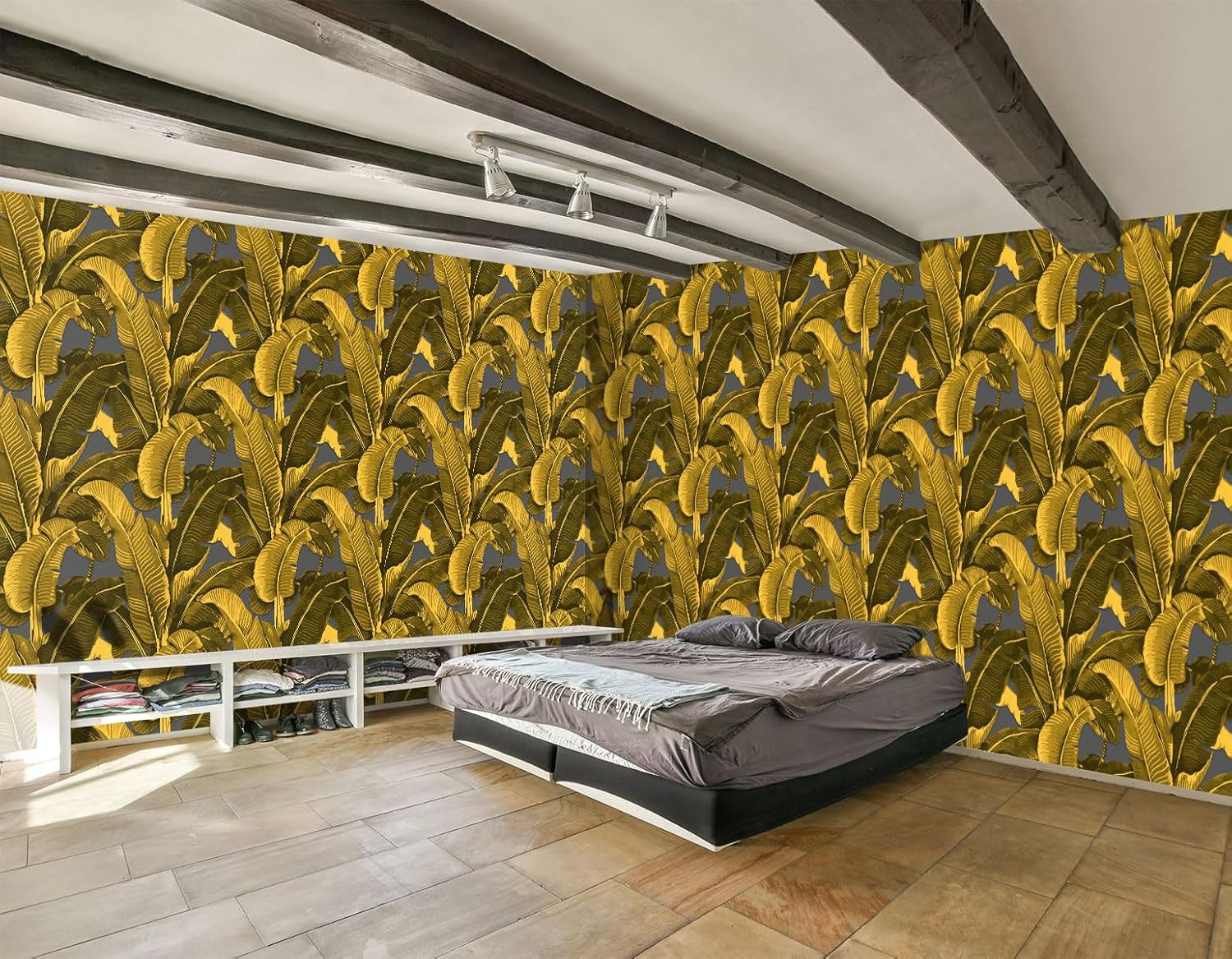 Vintage Gold Banana Leaf Bathroom wallpeper Living Room Bedroom Tropical Plant Wall Mural - 320"x108" (Not Peel and Stick)