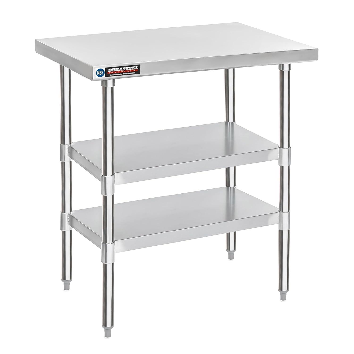 DuraSteel Food Prep Stainless Steel Table - 30 x 36 Inch Commercial Metal Workbench with Adjustable Under Shelf - NSF Certified - for Restaurant, Warehouse, Home, Kitchen, Garage