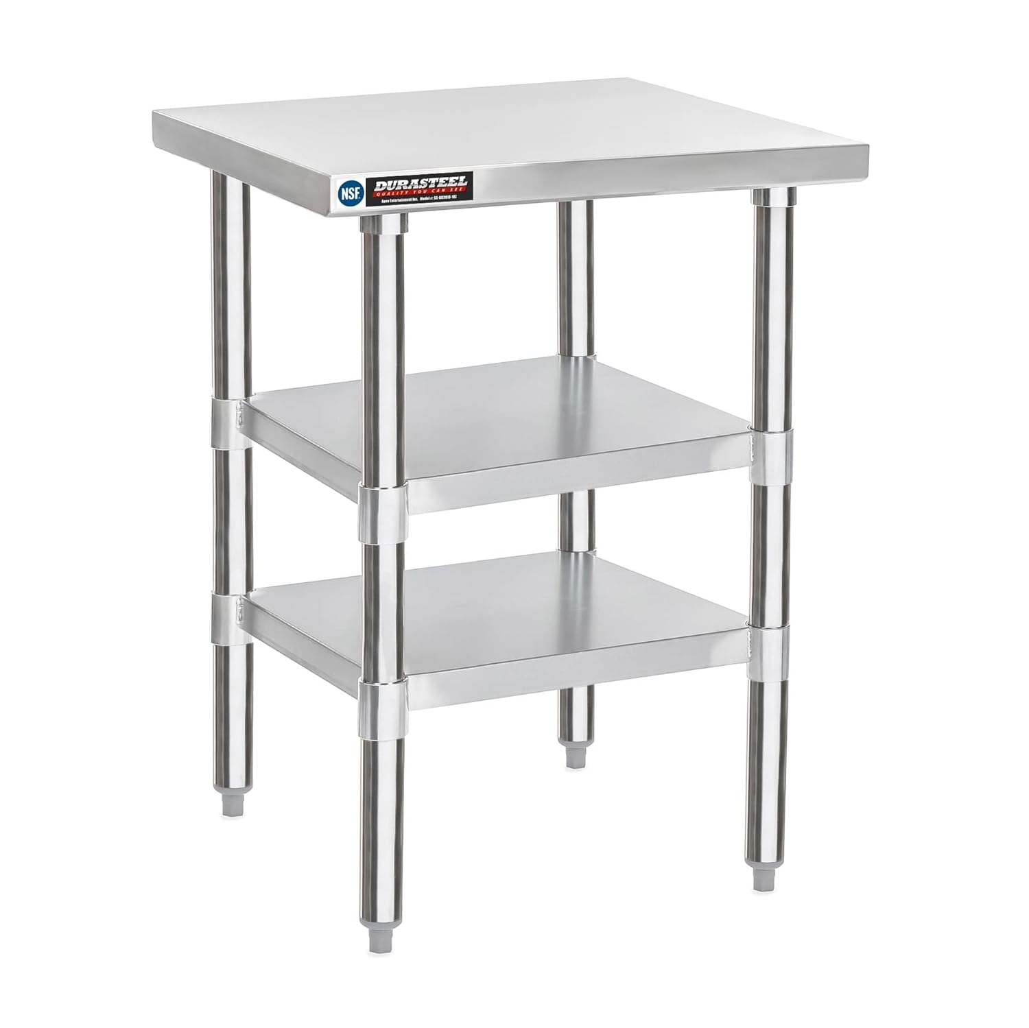 DuraSteel Food Prep Stainless Steel Table - 30 x 18 Inch Commercial Metal Workbench with Adjustable Under Shelf - NSF Certified - for Restaurant, Warehouse, Home, Kitchen, Garage