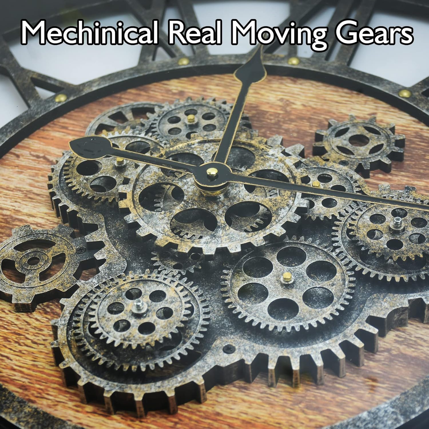 - 🧭【Real Moving Gears Wall Clock】The large rustic wall clock is design with multi-real moving gears, put battery in, various gears start working, makes a subtle relaxing sound and makes a living element in the environment in where it is placed, vintage and magical, catch all eyes of visits.