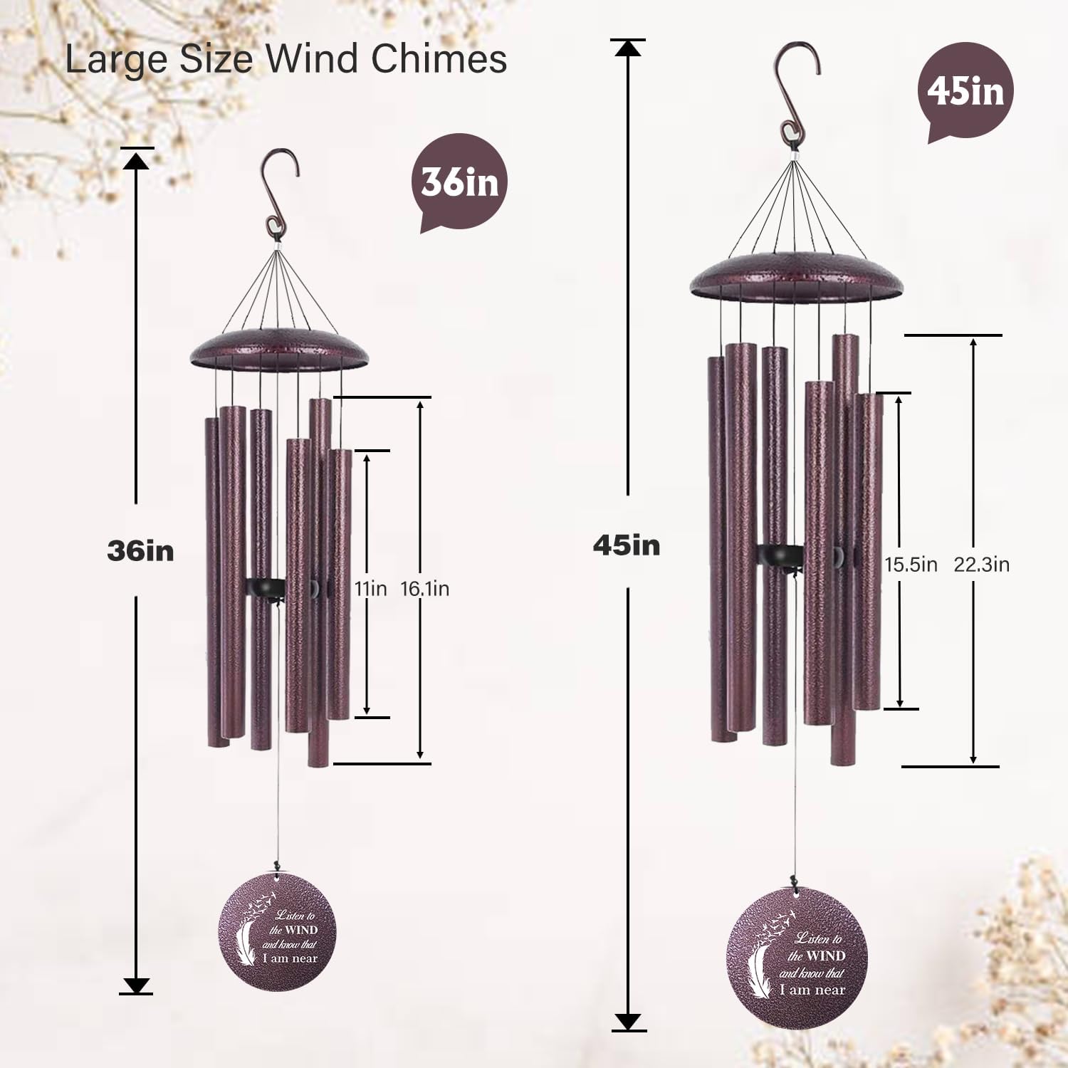 ASTARIN 36" Large Deep Tone Personalized Sympathy Wind Chimes, Memorial Wind Chime for Loss of Mother Father Loved One, Angel's Feather Bereavement Gifts Decor Outdoor Patio Garden(Produced in USA)