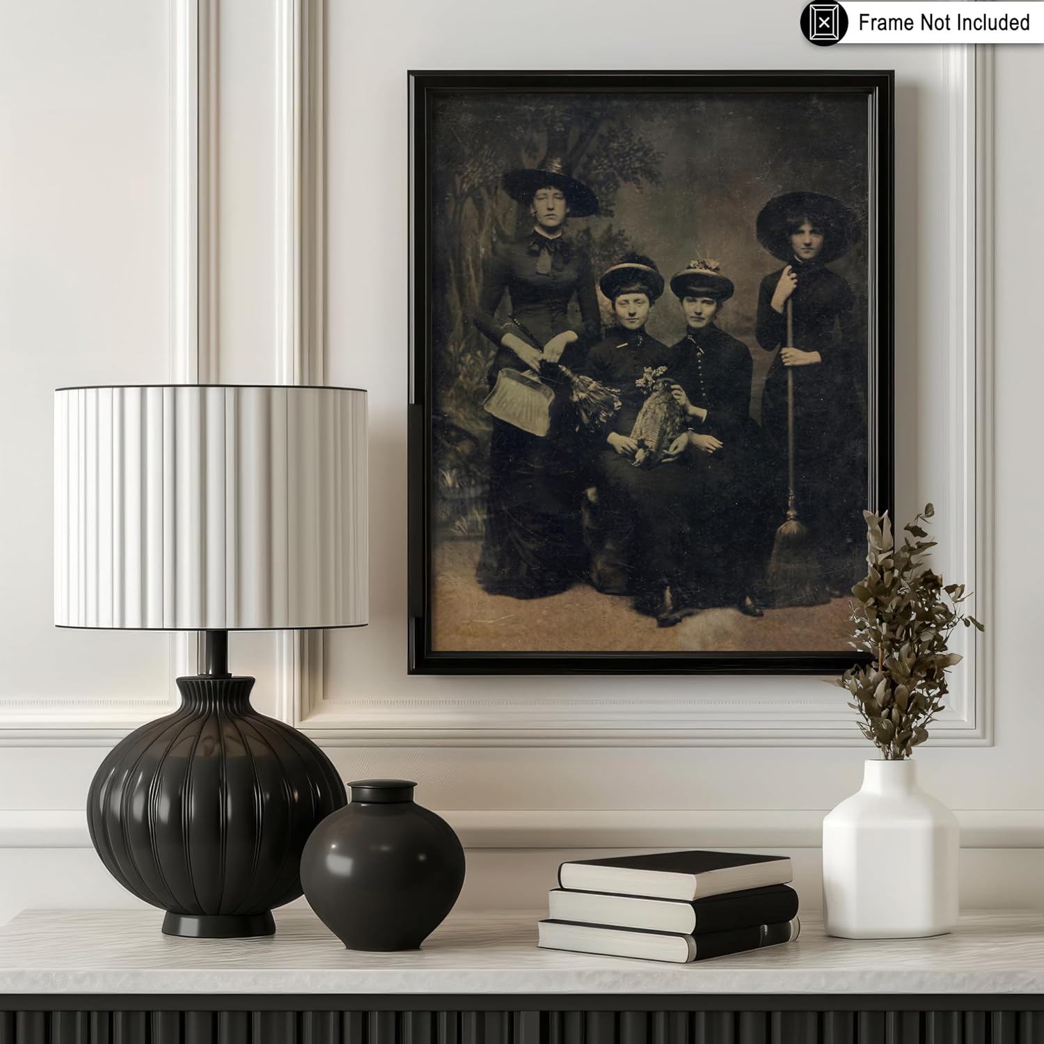 Poster Master Vintage Four Witches Coven Poster - Retro Witches Print - Witchcraft Art - Halloween Art - Gift for Men & Women - Gothic Decor for Living Room, Bedroom or Dorm - 8x10 UNFRAMED Wall Art