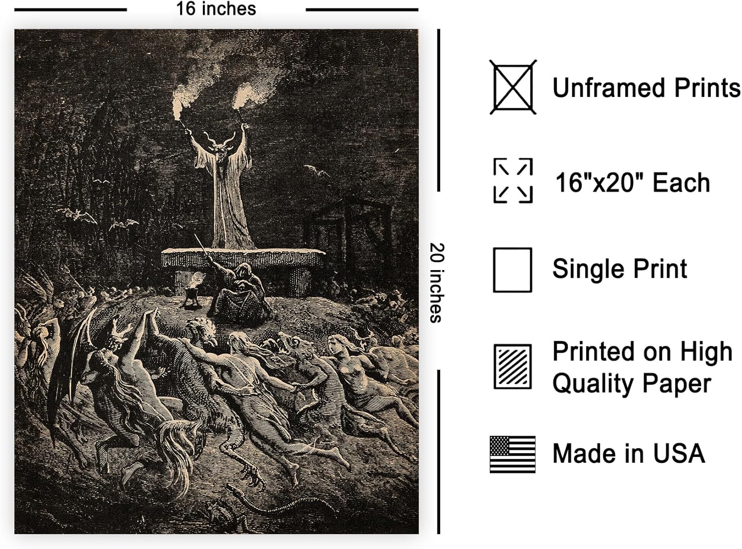 Poster Master Vintage Gustave Dore Poster - Retro Dance of Sabbath Print - Witchcraft Art - Halloween Art - Gift for Him & Her - Gothic Decor for Dorm, Living Room or Bedroom - 16x20 UNFRAMED Wall Art