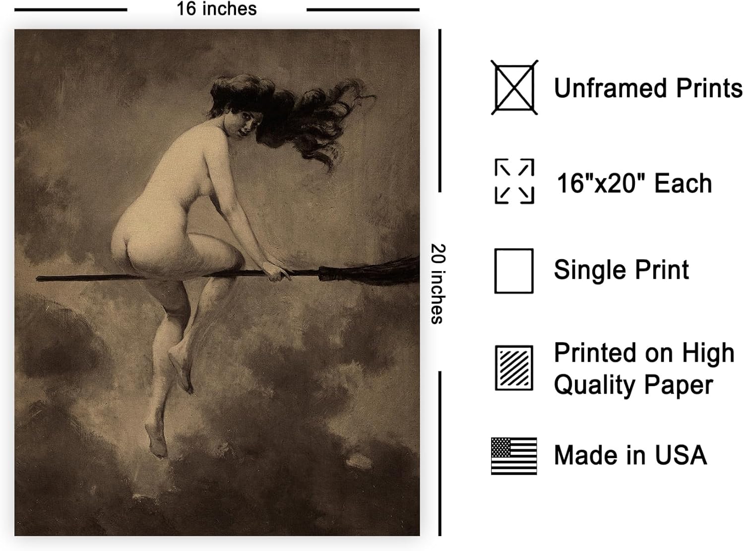Poster Master Vintage Departure for the Sabbath Poster - Retro Naked Witch Print - Halloween Art - Gift for Men & Women - Gothic Wall Decor for Living Room, Bedroom or Dorm - 16x20 UNFRAMED Wall Art