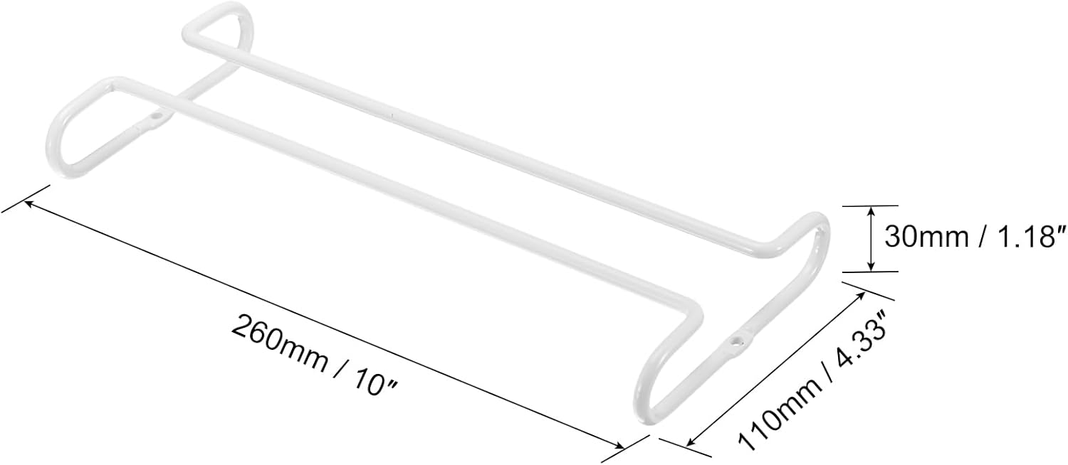 - [Style and Size] This wine glass rack is a single-row metal wine holder; Size: 260x110x30mm/10"x4.33"x1.18"(LxWxH); Material: Stainless Steel; Opening Diameter: 5.5mm; Color: White; Products Include: 4pcs x Under Cabinet Wine Glass Holder
