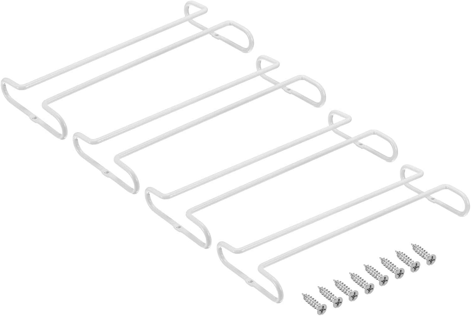 Uxcell Wine Glass Rack Under Cabinet - 4Pcs 10-Inch Stemware Hanging Rack, Stainless Steel Organizer Storage Hanger for 5.5mm Stemware Column, White