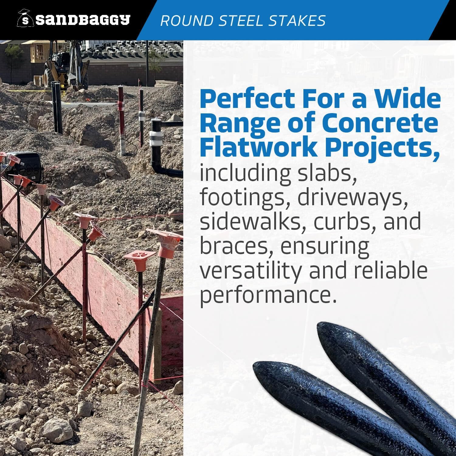 - SOLID STEEL DESIGN (NOT HOLLOW): These steel concrete stakes have a ΒΎ inch diameter made of solid steel! They wonβt bend or break during installation and are strong enough for heavy-duty construction projects that demand reliable support.