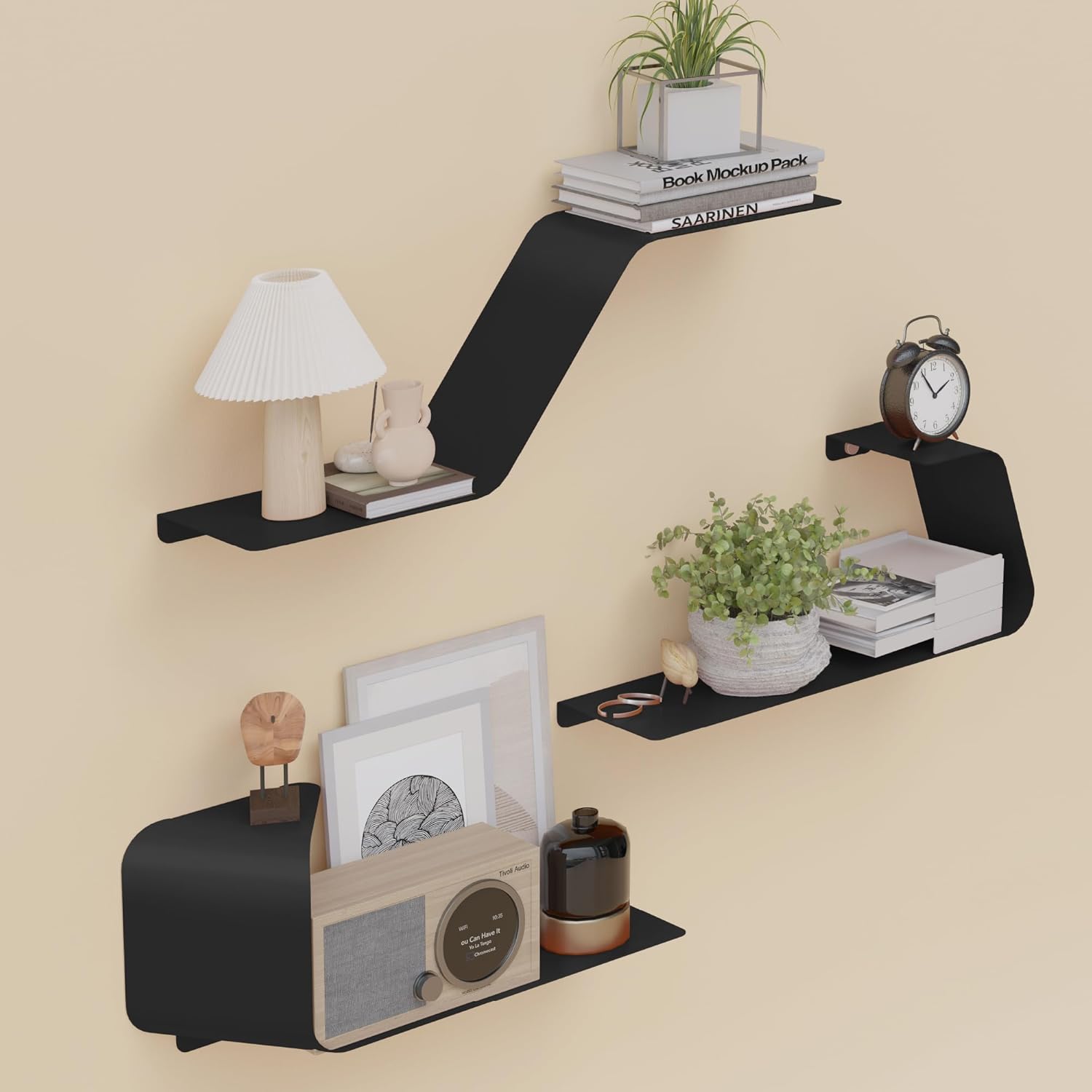 - Free Design and Easy Installation: The simple and stylized 3-piece shelf gives you endless creative freedom. According to your personal preference, you can freely match these sets of parts to create your unique decorative style, each combination is a reinterpretation of the wall space, is a deep love and desire for life. All you need is a drill and follow our instructions to install your unique floating shelf in 3 steps!