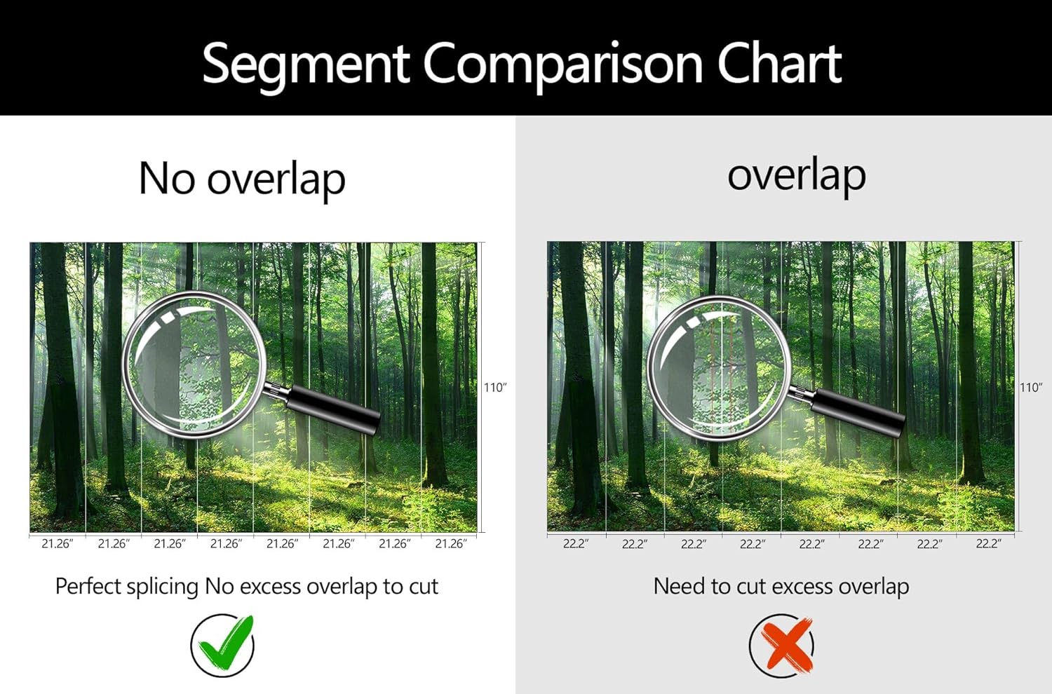 - Mural Size: The total size of this mural wallpaper is 170" x 110" / 432CM x 280CM (W x H), cut into 8 pieces, each measuring 21.26" x 110", for easy installation.
