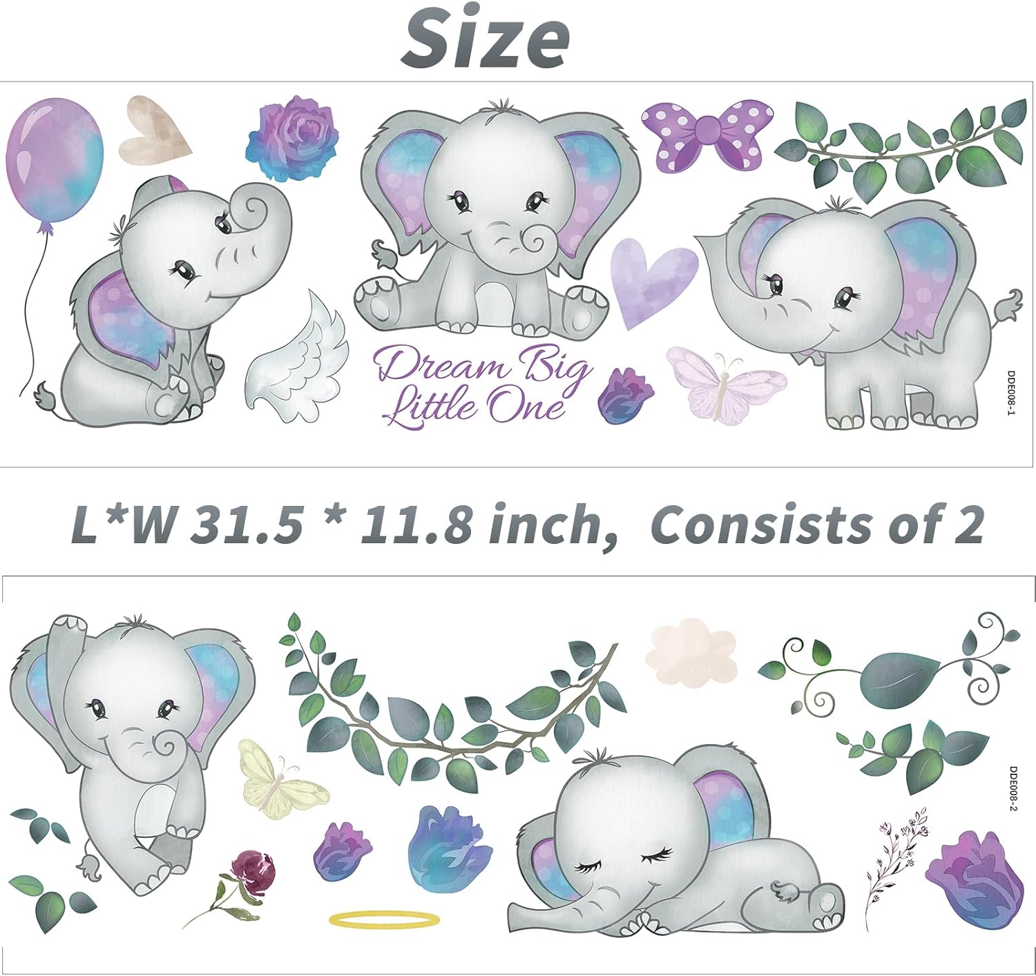 Wall Decals Stickers Dream Big Little One Elephant Wall Stickers Wall Murals Peel and Stick Removable Purple Rose Elephant Wall Decor for Baby Shower Room Nursery Boys Girls Bedroom Playroom Classroom