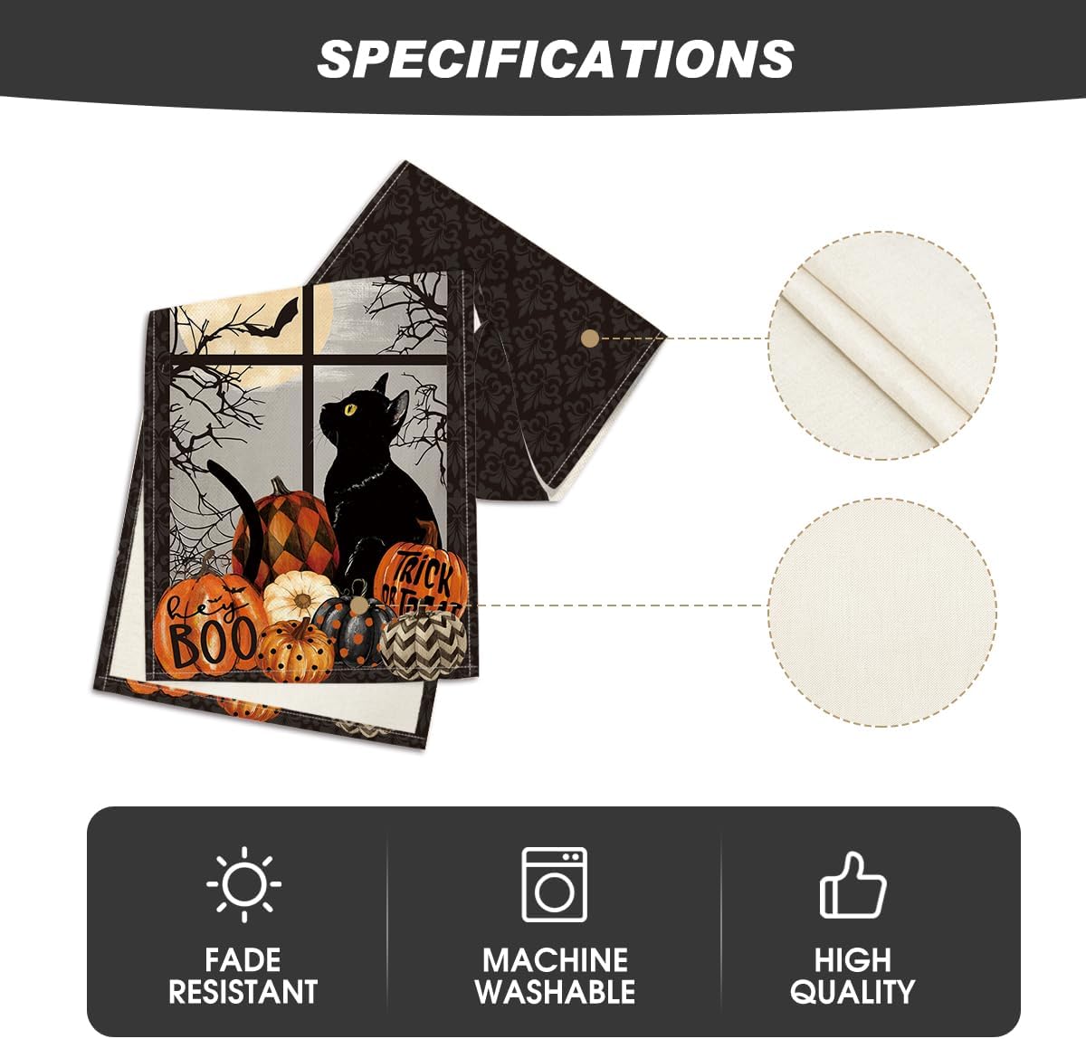 Artoid Mode Black Cat Pumpkins Boo Halloween Table Runner, Trick Or Treat Seasonal Kitchen Dining Table Decoration for Home Party Decor 13x48 Inch