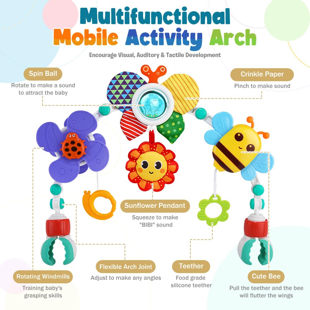 Baby Stroller Arch Toys,Adjustable Crib Mobile for Bassinet with Sensory Play Accessories and Hanging Toys,Baby Travel Car Seat Toys for Toddler Boy Girl 0 3 6 9 12 24 Months